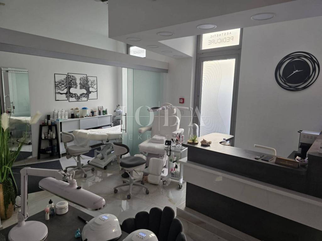 Prostor je u potpunosti opremljen za kozmetički salon sa svom potrebnom opremom i sa uhodanim poslovanjem i stalnim klijentima.