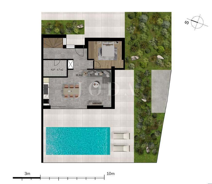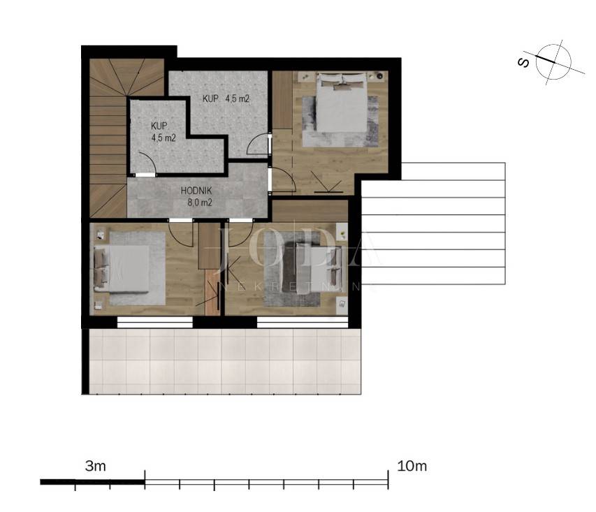 The semi-detached houses are located on a quiet hill in Crikvenica. Surrounded by Mediterranean nature, they offer privacy, a view of the sea and quick access to the promenade, beaches and restaurants. The elevated location offers a wide view of the city and the Adriatic Sea.