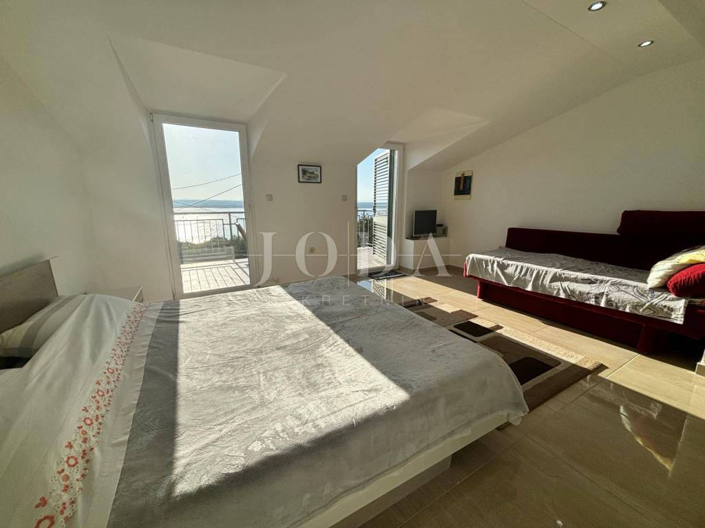 For sale is a fully renovated house near the sea with a stunning view, requiring no additional investment. The ground floor features a spacious dining area with a fully equipped kitchen and a bathroom. The first floor includes access to a private backyard, a bedroom, another bathroom, and a living room with access to a covered terrace offering a beautiful sea view. The second floor offers two additional bedrooms, a bathroom, and a spacious south-facing terrace with panoramic sea views. In front of the house, there are three parking spaces, with the possibility of building a pool in the yard.