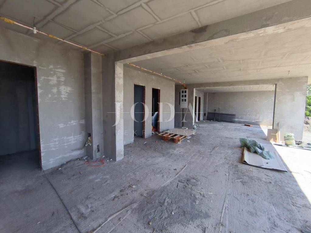The apartment is in the construction phase and is being sold as such. Electricity, water, sewerage, separator, installations for air conditioners, ceramics on the stairs, doors on the woodshed have been installed. The apartment has two rooms, a living room, a kitchen and a dining room, two bathrooms, a toilet, a room, a hallway and a large loggia of 13.80 m2.