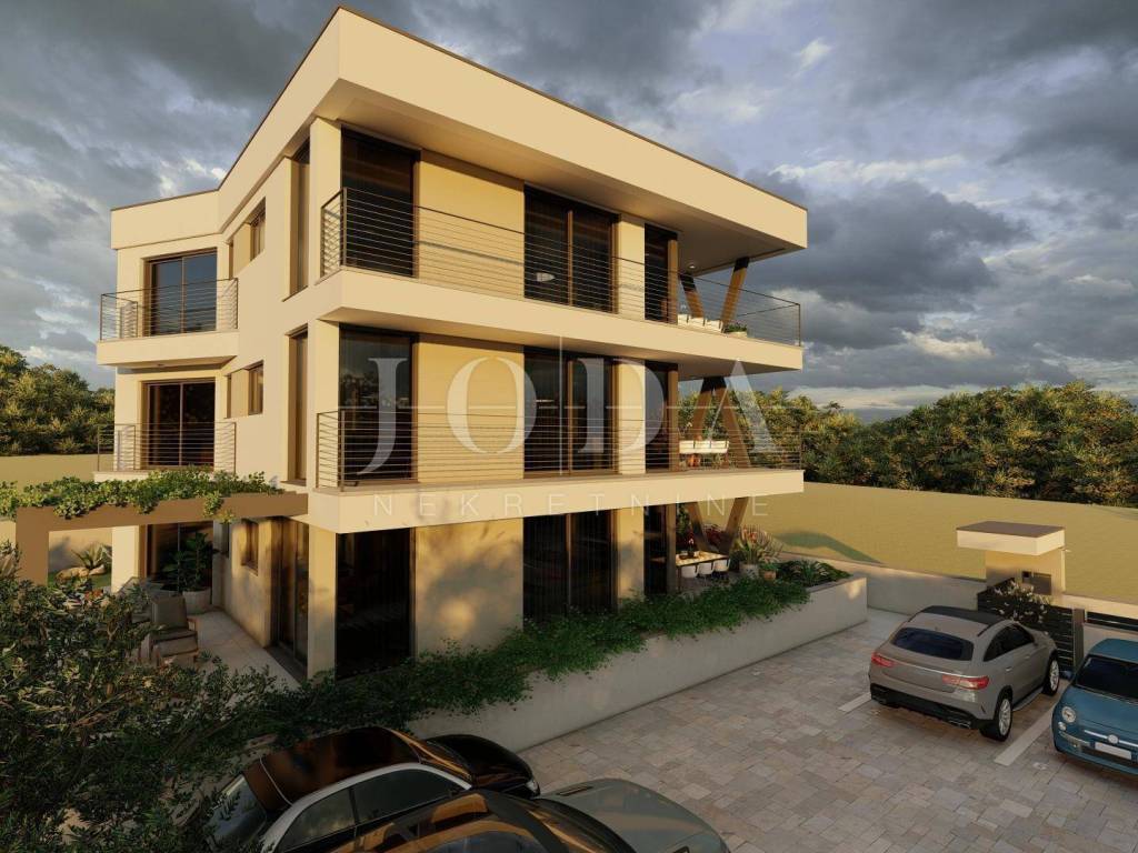 The villa has a total of three residential units. The apartment has a living area of 137m2 and consists of an entrance area, storage, a laundry room, a spacious living room with an exit to the terrace, a kitchen and dining room, three bedrooms and two bathrooms. The future owner can choose construction materials such as ceramics, parquet and sanitary ware. The property will have all rooms air-conditioned, underfloor heating and quality ALU carpentry. The apartment has two parking spaces and approx. 120m2 garden. It is located in a great location, only 500 meters from the sea!