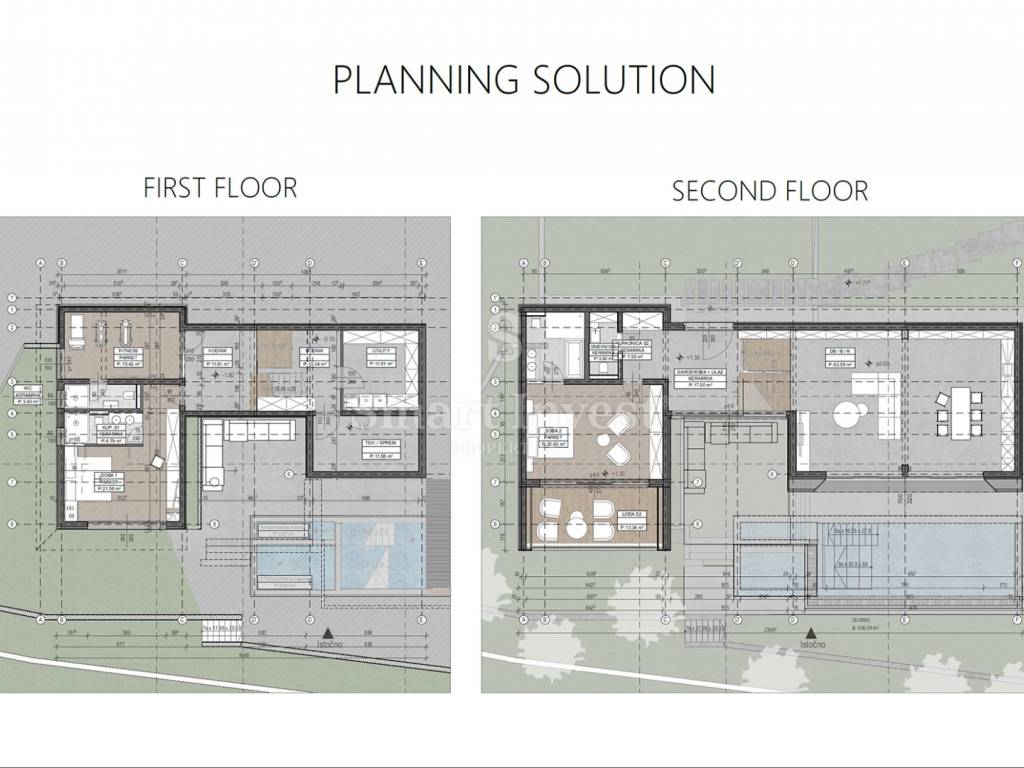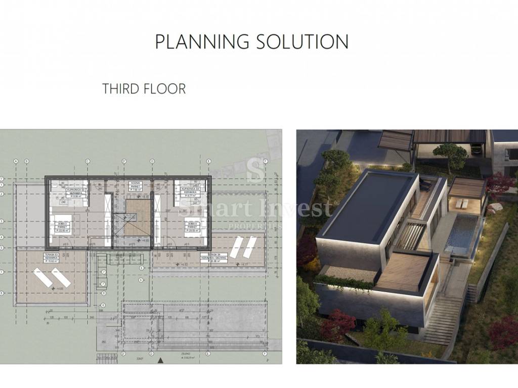 This architecturally impressive property exudes contemporary luxury and refined minimalism. The geometric purity of lines, elegant concrete surfaces and natural wood details give the villa a special character, creating an ideal combination of home warmth and aesthetic simplicity, while carefully designed lighting discreetly emphasizes the geometry of the building, creating a refined evening atmosphere. Spacious glass walls connect the interior with the exterior, opening up an unobstructed view of the sea and creating a feeling of lightness and connection with nature, while each space is characterized by airiness and pleasant warmth.