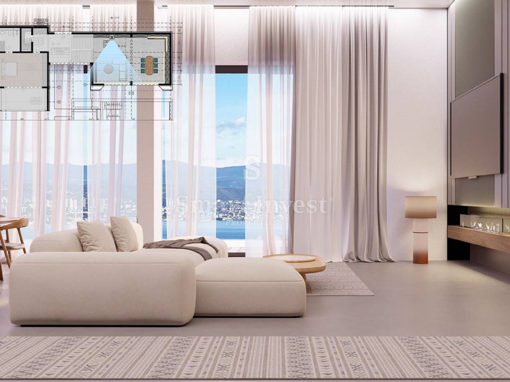 In one of the most attractive locations in Opatija, just a ten-minute walk from the sea and the city center, is situated this elegant villa whose modern design and open sea view create the perfect combination of luxury and Mediterranean atmosphere.