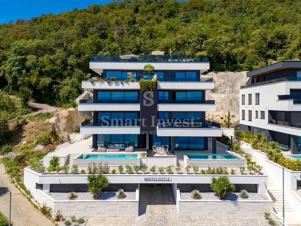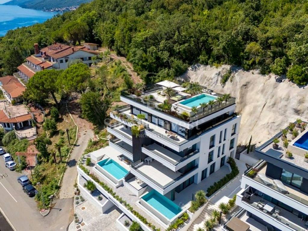 The building with 7 luxury apartments and an underground garage is situated on an exceptional location with an open view of the sea, and is only 250 m away from the sea and a 10-minute easy walk to the center of Opatija.