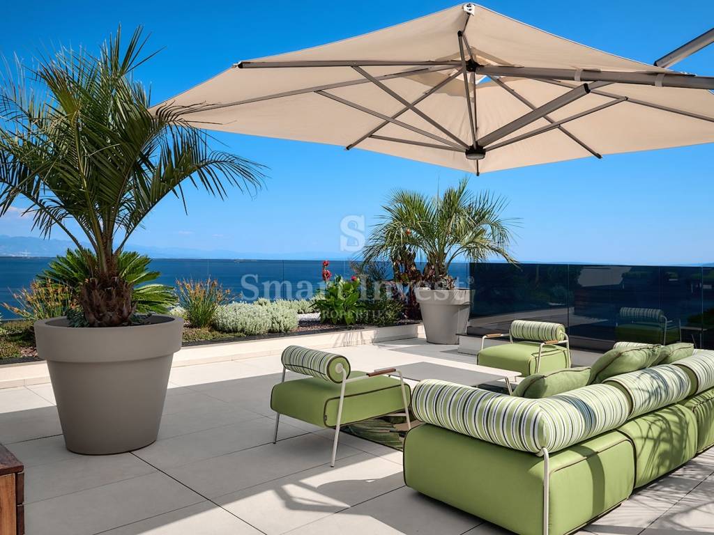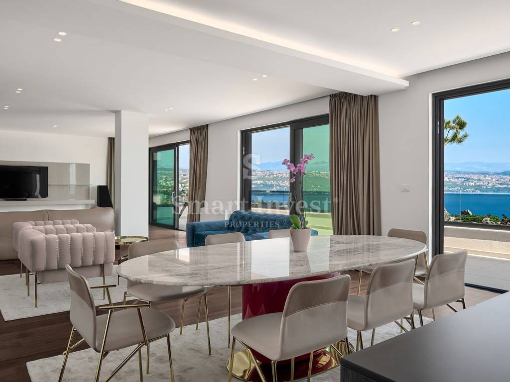 This beautiful penthouse is designed for maximum comfort and luxury. Inside the apartment you will find a hallway, a luxurious living room with a kitchen and a dining area, a master bedroom with en-suite bathroom and dressing room, two more bedrooms with en-suite bathrooms, a storage room, and a toilet. But what makes this apartment really special is the outdoor area with a spacious balcony that stretches along the entire length of the apartment and a luxurious roof terrace with a swimming pool - the perfect place to relax and enjoy the fantastic view of the sea and Opatija!