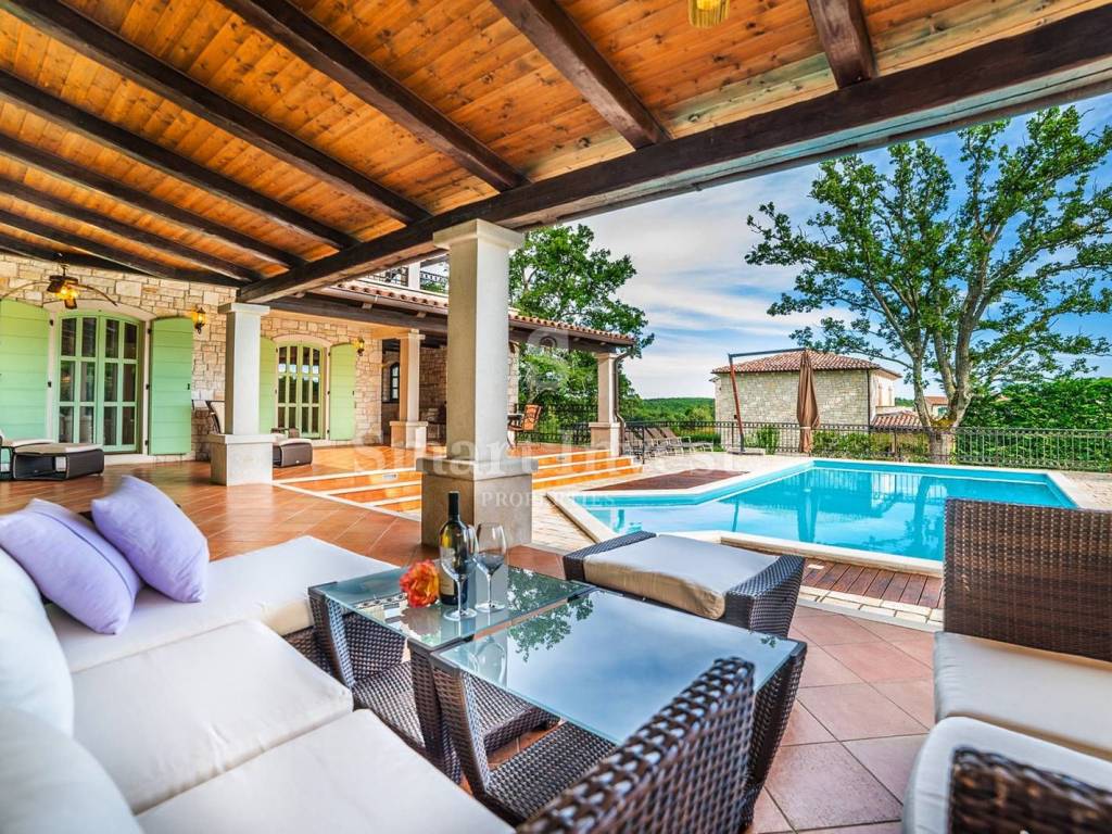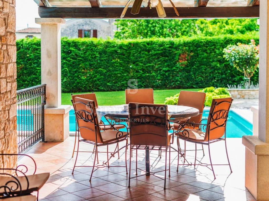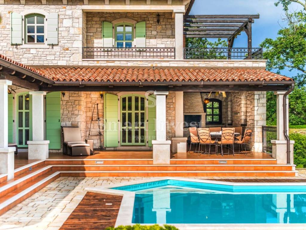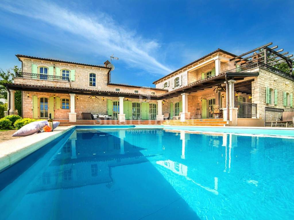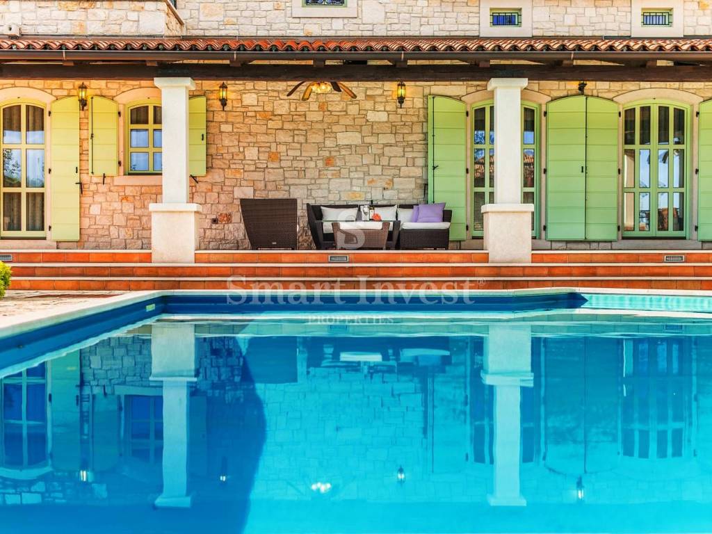 ISTRIA - POREČ vicinity, Far sale is a gorgeous luxury equipped rustic stone villa with a heated swimming pool, tavern, sauna and spacious landscaped territory, on a quiet location surrounded with old olive trees and oaks, in a small picturesque village 15 minutes drive to the center of Poreč and the sea.