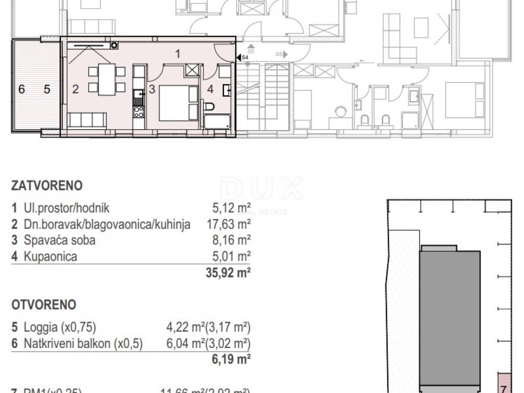 Apartment S4 is located on the first floor and consists of a bedroom, bathroom with underfloor heating, living room with kitchen and dining area and a covered terrace ideal for relaxing on warm summer evenings. The apartment also has a parking space. All rooms are equipped with air conditioning, while the apartments on the first and second floors offer a beautiful view of the sea.