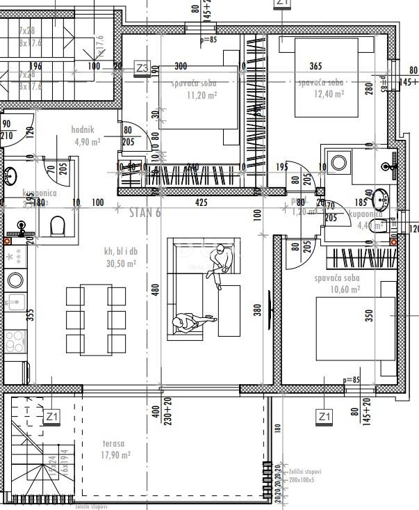 Piso de cuatro habitaciones nuevo, segunda planta, Sukošan