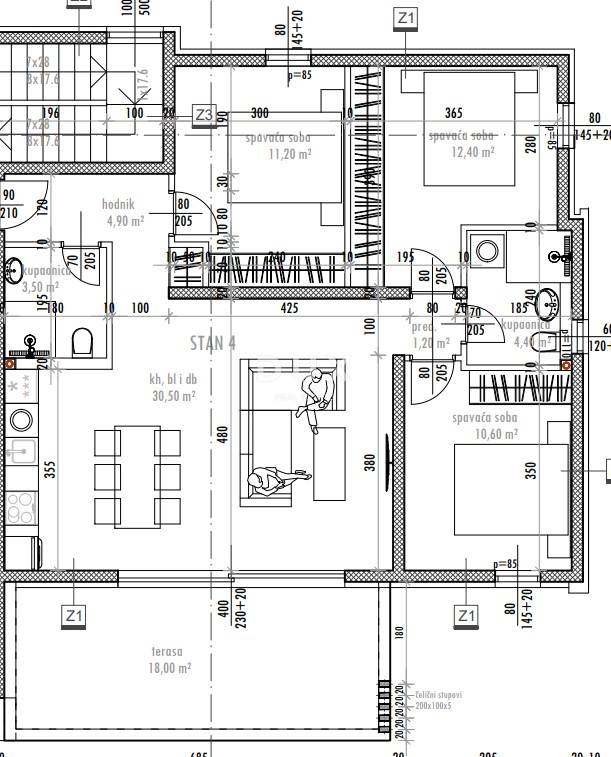 Piso de cuatro habitaciones nuevo, primera planta, Sukošan