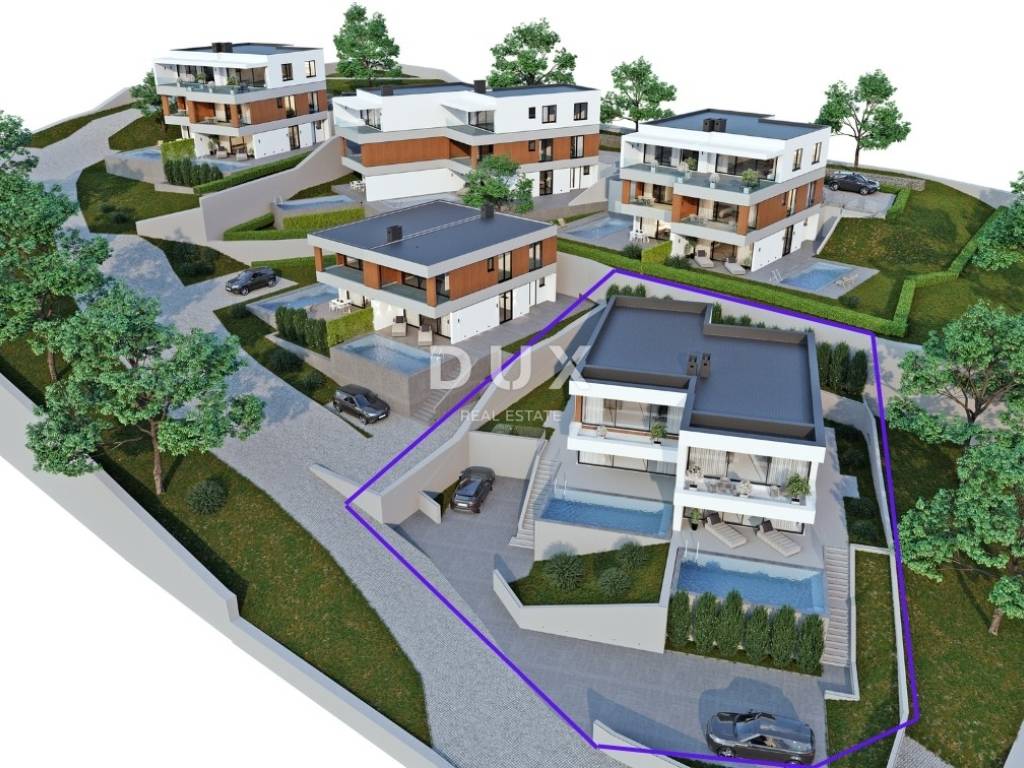 In the exclusive sale of Dux, we highlight a unique opportunity for a new building in Lovran, near Opatija. It is an apartment located in a quiet street above Lovran beach with panoramic sea view. The apartment is located within a gated complex with a boutique lifestyle, - luxury, panoramic sea view, pool, sun, quality construction. There are two duplex apartments in one house. Each unit has its own private entrance and guarantees a sophisticated way of living. Apartment S1 consists of a living room on the ground floor that communicates with the kitchen and dining room, toilet, wardrobe and laundry room. On the 1st floor there are 3 bedrooms, bathrooms and an additional toilet. The terrace offers a beautiful view of the sea. We highlight high ceilings, large glass walls from which a truly magnificent panoramic view of the sea is offered, underfloor heating with a heat pump, first-class ceramics, parquet floors and sanitary facilities, aluminum joinery, heated pool, garden with rich horticulture, irrigation. The microlocation is fantastic, the drive to the center of Lovran or the first beach takes 5 minutes on the local road while the buildings are located below the aforementioned road in a street without traffic, which guarantees silence. The drive to Opatija center is 12 minutes by car. This is an ideal opportunity for investment or living in the Opatija Riviera, suitable for personal residence or luxury tourist rental. To arrange a visit to the property, call the agent with confidence - consultation in German is possible.