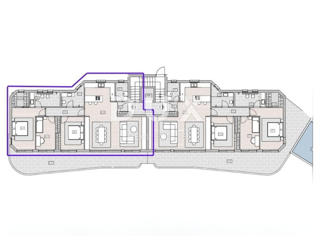 Dux is a top-quality new building that stands out as currently the closest to the sea and the very center of Opatija, and at the same time available on the market. This luxurious building is located in a quiet, dead-end street with no traffic, which provides complete privacy and silence, and yet is at an ideal distance so that you can easily walk, in just a few minutes, to the center of Opatija and the first beaches. Apartment A5 is located on the 1st floor and covers 138 m, offering a high level of comfort and a functional layout. From the entrance hall you enter an open concept that combines the living room, kitchen and dining room into a harmonious, spacious and bright whole, ideal for socializing and relaxing. From this space you access an additional hallway that leads to three bedrooms and two bathrooms. The master bedroom has its own bathroom and dressing room, providing complete privacy and comfort. From each bedroom, as well as from the living room, it is possible to exit to a spacious terrace with a beautiful view of the sea, perfect for enjoying the outdoors. The apartment also contains a practical storage room. This apartment also includes two garage parking spaces and a storage room, which further increases the practicality and value of this property. The building is equipped with top-quality materials and technologies: - Schüco aluminum joinery (panorama version with thin profiles, tinted triple-layer glass) - first-class Italian ceramics - heat pump for each apartment + underfloor heating throughout the apartment - separate multi-split air conditioning system in each room - top-quality sanitary ware, floors and interior doors - elevator - garage with high ceilings - storage room for each apartment It is especially important to point out that there is a very gentle downhill slope to the center of Opatija or the first beach, within a 5-minute easy walk, while by car it takes literally 60 seconds. This is a truly rare opportunity to buy a property in Opatija that combines a top location, luxurious equipment and impeccable construction quality. To arrange a visit to the property, call the agent with confidence - consultation in German is possible.
