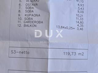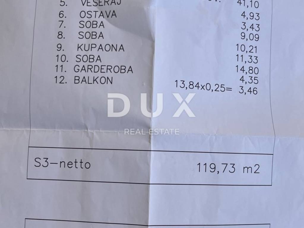 Apartments in a new building in the very heart of Matulji are a real rarity - and this spacious 3-bedroom + living room with a beautiful sea view will surely win over anyone looking for the perfect home or investment. With a net area of 119.73 m, the apartment is located in the attic of a quality new building and offers the perfect combination of modern comfort and an attractive location. It consists of an entrance hall, three bedrooms, a bathroom, an additional toilet, a practical storage room and a laundry room. The central part of the apartment is a spacious living room connected to the kitchen and dining room, from which you can exit to a balcony with a stunning sea view - an ideal place to enjoy your morning coffee or evening relaxation. The apartment has its own parking space, and is being sold in a "turnkey" phase, fully completed and ready to be decorated to your taste. Due to its exceptional location in the center of Matulji, in the immediate vicinity of schools, kindergartens, shops and all important transport links to Opatija and Rijeka, this apartment represents a rare opportunity on the market - perfect for family life or as a safe investment.