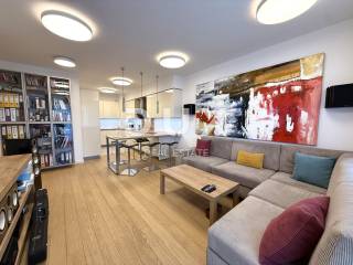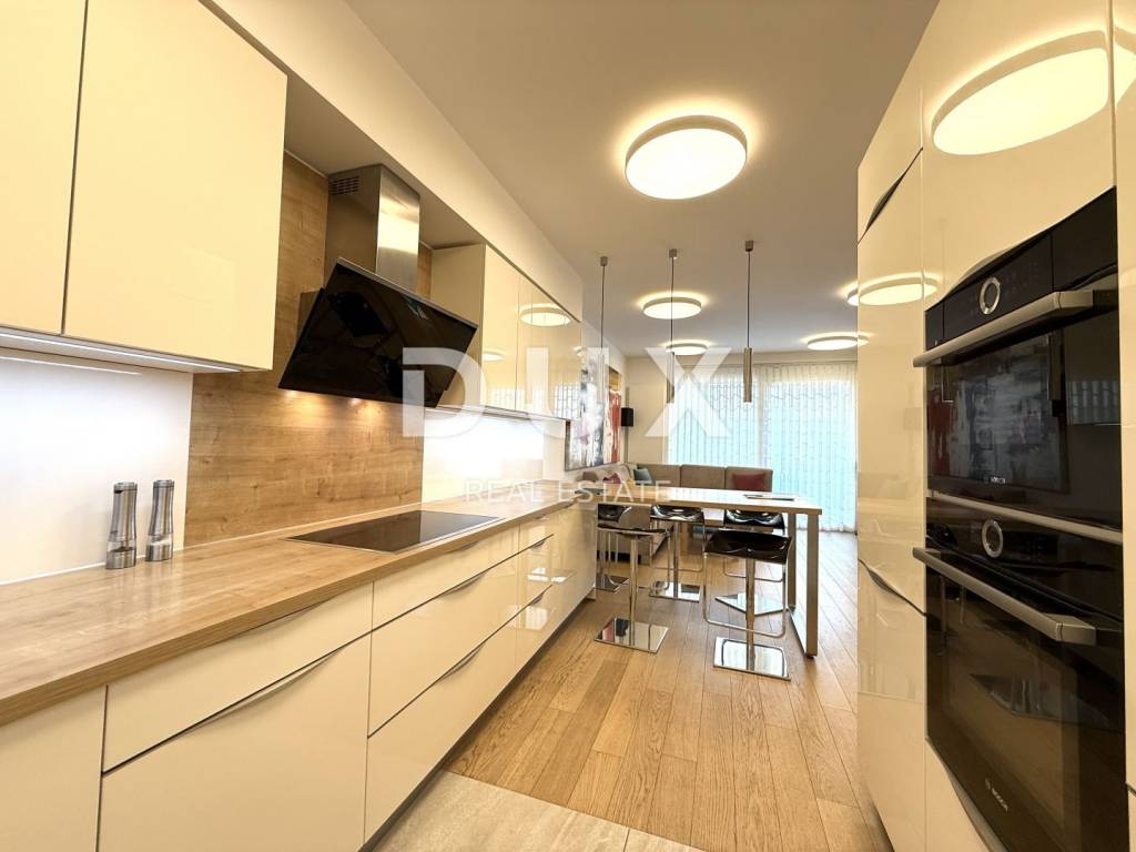 For sale is an extremely luxuriously equipped and designer furnished three-bedroom apartment of 108.55 m, located on the 7th floor of a top new building, in an attractive location. The apartment is abundant in natural light thanks to its southeast orientation and offers a peaceful view of the building's inner courtyard. The apartment consists of an entrance hall, two comfortable bedrooms, two elegantly decorated bathrooms (one with a bathtub, the other with a walk-in shower - MOMA Design brand), and a spacious open-concept living room with a top-quality NOLTE kitchen (10-year warranty), a dining room (total 76 m) and access to a covered loggia of 8.43 m. The entire interior is equipped with CALLIGARIS custom-made furniture (living room, bedrooms and built-in wardrobes), and the kitchen and appliances include renowned brands: BOSCH (washing machine, dishwasher, steam oven, oven and microwave), AEG induction hob 78 cm and hood with automatic control. There is a SAMSUNG 85 NEO QLED 4K 3D TV in the living room, and a 65 version in the bedroom both under warranty. The apartment has underfloor heating in the hallway and bathrooms, controlled by the most modern SMART HOME system ENTIA, which allows personalized management of lighting, heating, security and energy consumption. The lighting is fully LED (LISBOA DALI protocol, class A+++), with the possibility of dimming. All rooms are air-conditioned with Daikin devices, and security is additionally ensured by security doors and video surveillance of the building. The joinery is aluminum-wood with triple-layer glass (10-year warranty), and the roller shutters are ROLTEK with electric raising/lowering (SMART scenarios, 5-year warranty). The apartment is fully prepared for advanced AV and network systems UTP Cat. VII infrastructure for Ethernet up to 20 Gb/s and Hi-Fi/AV installation with more than 4800 m of additional cables have been implemented. A Home Theater system is also integrated in the living room. The electrical installations were reconstructed and adapted to the SMART system. The apartment has a large garage of 21.44 m with a three-phase connection (5 x 16 mm, 12 kWh), a full-width wardrobe and additional hanging shelves. In addition to the garage, there is also a marked parking space within the building with an area of 17.18 m. Entrance to the building and garage is also possible via token or remote control. The A+ energy certificate guarantees high energy efficiency, and the entire apartment is sold fully furnished - ready to move in without additional investments. This property is ideal for those looking for the perfect blend of luxury, technology and comfort, in a modern urban environment, with privacy and top performance at every turn. Feel free to contact us for more information and a tour.