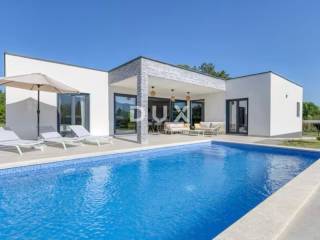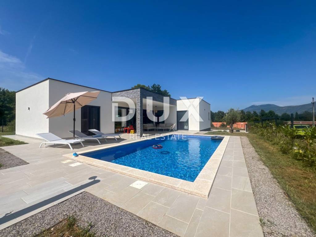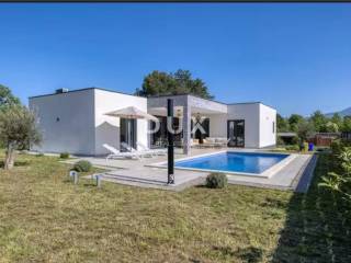 On the southeastern coast of Istria, where the green hills meet the sea, where nature and heritage come together, there are two small towns of similar size but with different but mutually complementary characters - Labin and Rabac . The picturesque town of Labin rises on a hill 320 meters high, only five kilometers from the white pebble beaches in Rabac. Intertwined with rich history and mining that marked this region, Labin, which was declared an independent republic for a short time, is today a fascinating city of contradictions; old and new, history and present, tourism and art. For sale is a modern new building with a residential area of 138 m2 with two terraces, one of which is covered with an area of 19 m2. The villa is located on a spacious plot of 970 m2. It contains three spacious bedrooms, each with its own modern bathroom, providing maximum comfort and privacy. An additional guest toilet is located at the entrance. The central part of the house consists of an open space kitchen, which is connected to a spacious and bright living room. This space is perfect for family gatherings and entertainment, thanks to the large glass surfaces that provide plenty of natural light and a beautiful view of the garden. The outdoor space is completely fenced, where there is a swimming pool of 32 m2. This house is built from the highest quality materials, with special emphasis on energy efficiency and durability. All bathrooms and the living room are equipped with underfloor heating, which provides additional comfort during the colder months, but also with air conditioners, which provides an optimal temperature throughout the year. This exceptional property offers everything you need for a luxurious and comfortable life.