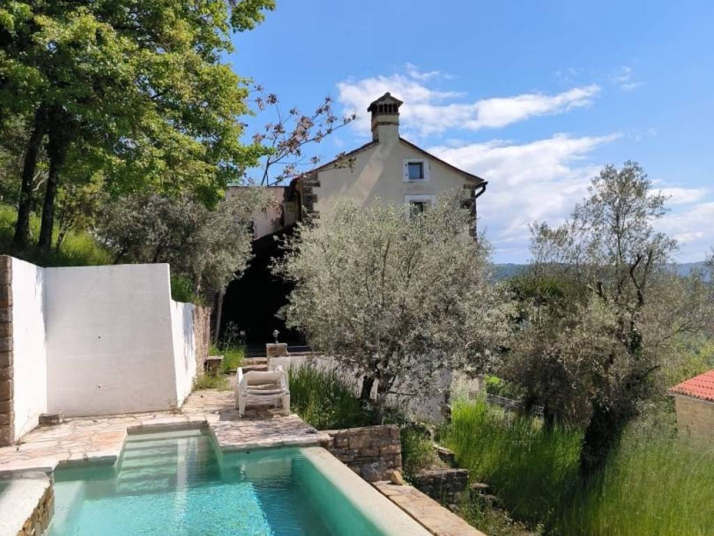 We present a unique property on the market! A stone fairy tale with a panoramic view of Motovun in the middle of untouched nature! In nature, these are authentic Istrian houses where originality and ambiance have been preserved to the maximum. This property is completely isolated, but only 800 meters as the crow flies is Zigante's very famous truffle center and other facilities. Future owners have the opportunity to enjoy a unique property with an unreal view of nature and complete privacy and peace. We are working on a property that offers 6 bedrooms and 4 bathrooms, and in addition to the main house, an additional house is being sold as a possibility for additional accommodation capacity or as a party zone. The main house has a net area of 360 m2, while the second house has a net area of 105 m2. The houses also offer a playroom, utility rooms, a technical room and many other facilities. Orientation south - from all parts of the house there is a view of Motovun from the bathrooms to the bedrooms. This stone fairy tale also includes 2,891 m2 of land located above, next to, and below the house. The peak of the hedonism of this fairy tale is the heated overflow pool (21m2) that offers a magical panoramic view of nature and Motovun. In the garden there is also a summer kitchen with a grill area. This stone fairy tale functions conceptually as a labyrinth, so we recommend all interested clients to schedule a tour in order to fully experience untouched nature and a very authentic real estate. Technical description: - 8 air conditioners - 20 cm roof insulation - 60 cm stone walls - three-chamber biological purification system