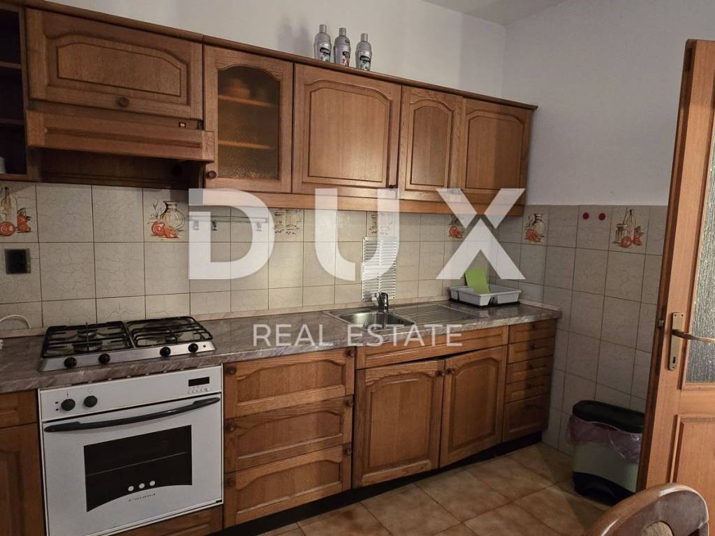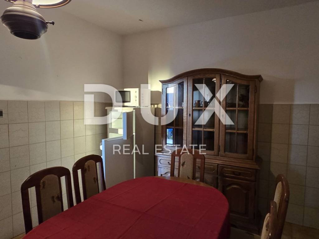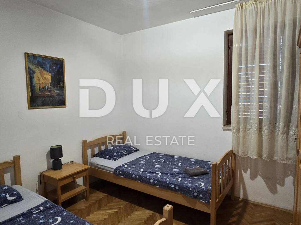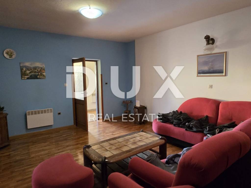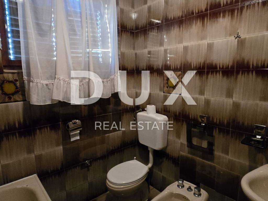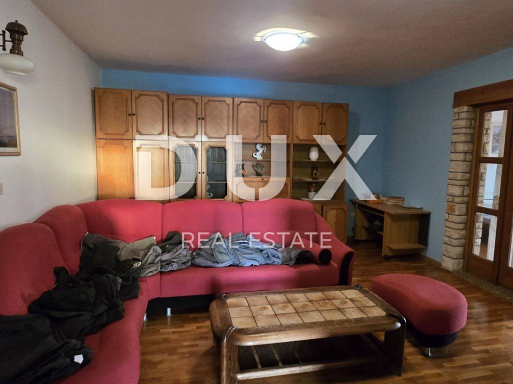Vanjskim stubištem pristupamo katu gdje se smjestio prostran stan od 150 m2 koji se sastoji od hodnika, kuhinje, dnevnog boravka, dvije kupaonice, 4 komforne spavaće sobe te velike terase s koje se pruža pogled sve do prekrasnog plavog mora.