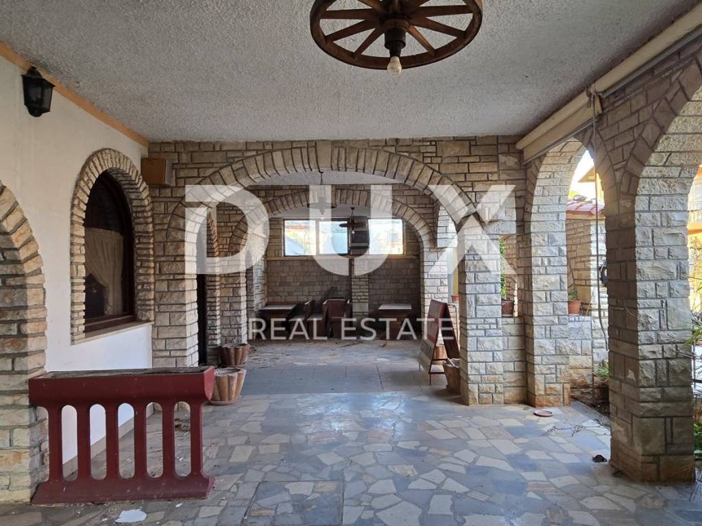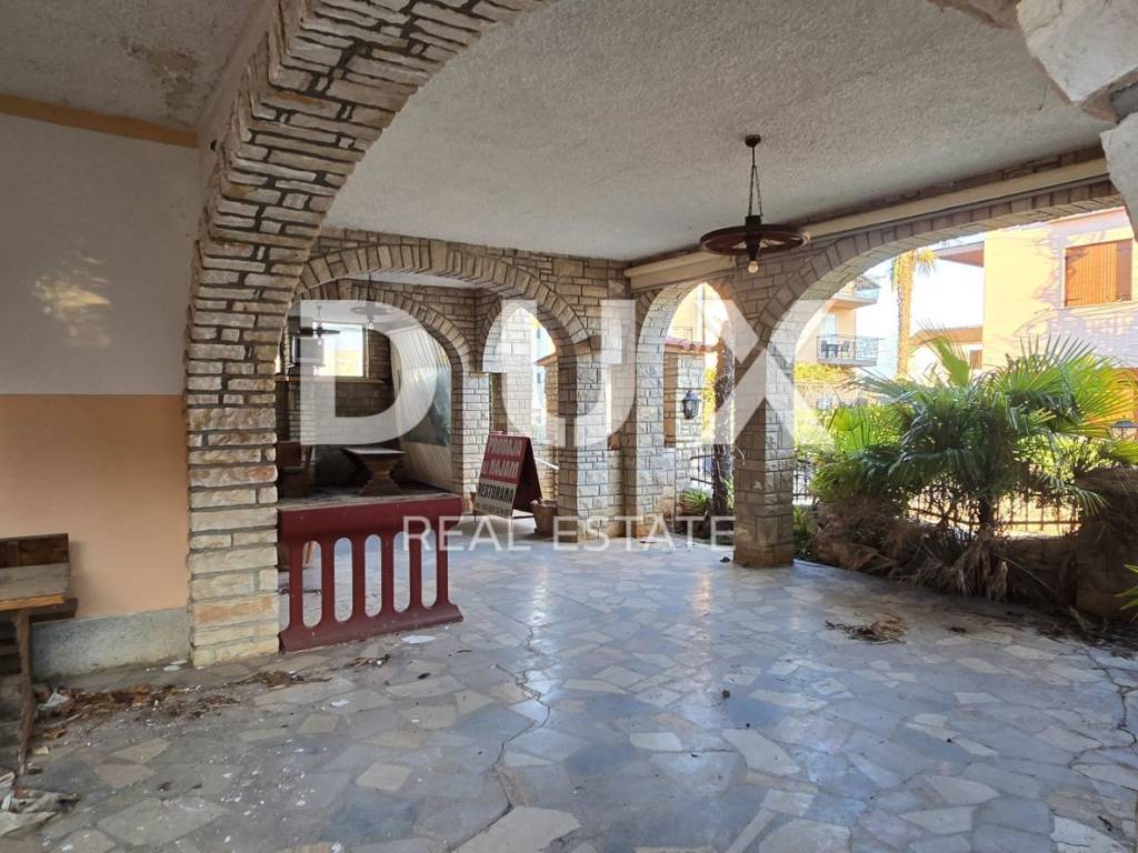 U prizemlju nekretnine se nalazi restoran površine 150 m2 s velikom natkrivenom terasom, kuhinjom, skladištem, kupaonicom za zaposlenike, wc-om za goste restorana te komorom.