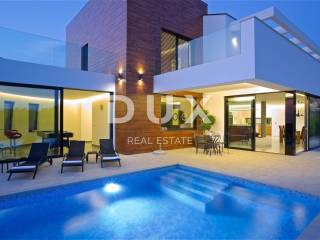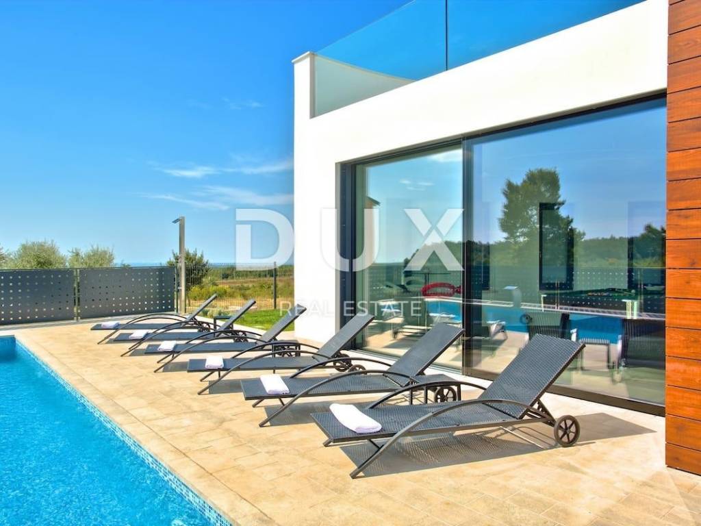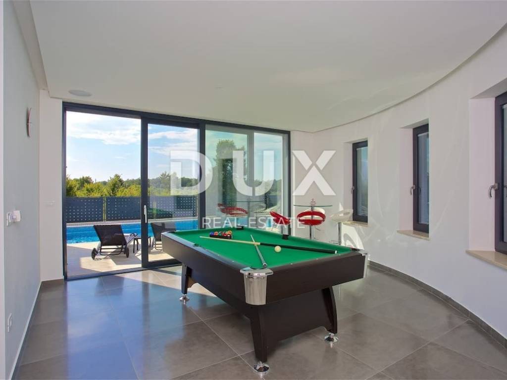 ISTRIA, VIŠNJAN - a picturesque and lively Istrian town, whose beautiful old town core fills everyone who steps into it with a comfortable feeling of beauty and peace. Višnjan is located in the western part of Istria, only 12 km from Poreč, on a gentle hill of 244 m above sea level. Today, the Municipality of Višnjan has 56 settlements offering a rich range of tourist accommodation facilities. Along with untouched nature and peace, the feeling of pristine pleasure is unique. The charm of Višnjan and its long history can be seen at every turn and represent the perfect backdrop for enjoying cultural events such as local festivals, fairs, music concerts, film screenings that are planned in the summer months. The aspiration for an increasingly rich cultural and musical program on the most beautiful stage of the old town core is the message that everyone will find something for themselves in the new edition of the Višnjan Romantic Evenings. A masterpiece of modern architecture, located on a small hill with magnificent views of the sea and the countryside. As for the construction and interior design, the play of shapes and colors is evident, the result of which is a minimalist, yet lively, inviting and warm combination. The spacious and open floor plan is paired with large windows and French doors, allowing light to penetrate throughout the day. The villa consists of a kitchen and a spacious living room leading to the pool, a basement with a fireplace and a games room/gym, 5 bedrooms, each decorated in its own style, from charming romantic to urban and elegant. The furniture and equipment are top-quality products from renowned brands. This is the perfect property for luxurious living in a coastal town or a lucrative rental business.