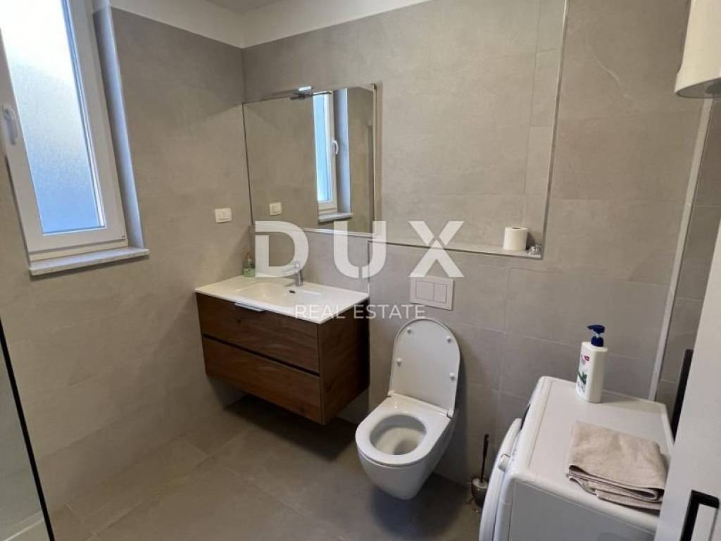 We are selling an apartment in a new building on the first floor. It consists of two bedrooms, a living room with an open space concept kitchen and dining room, an entrance hall, a bathroom with a toilet, a guest toilet and a balcony. The apartment is equipped and furnished and is being sold as such. The apartment also has a garage of 20 m2. An inverter air conditioner was installed in the apartment for heating, and city gas was supplied to the apartment. An excellent property in a sought-after location in the heart of Srdoč. AGENT'S RECOMMENDATION!