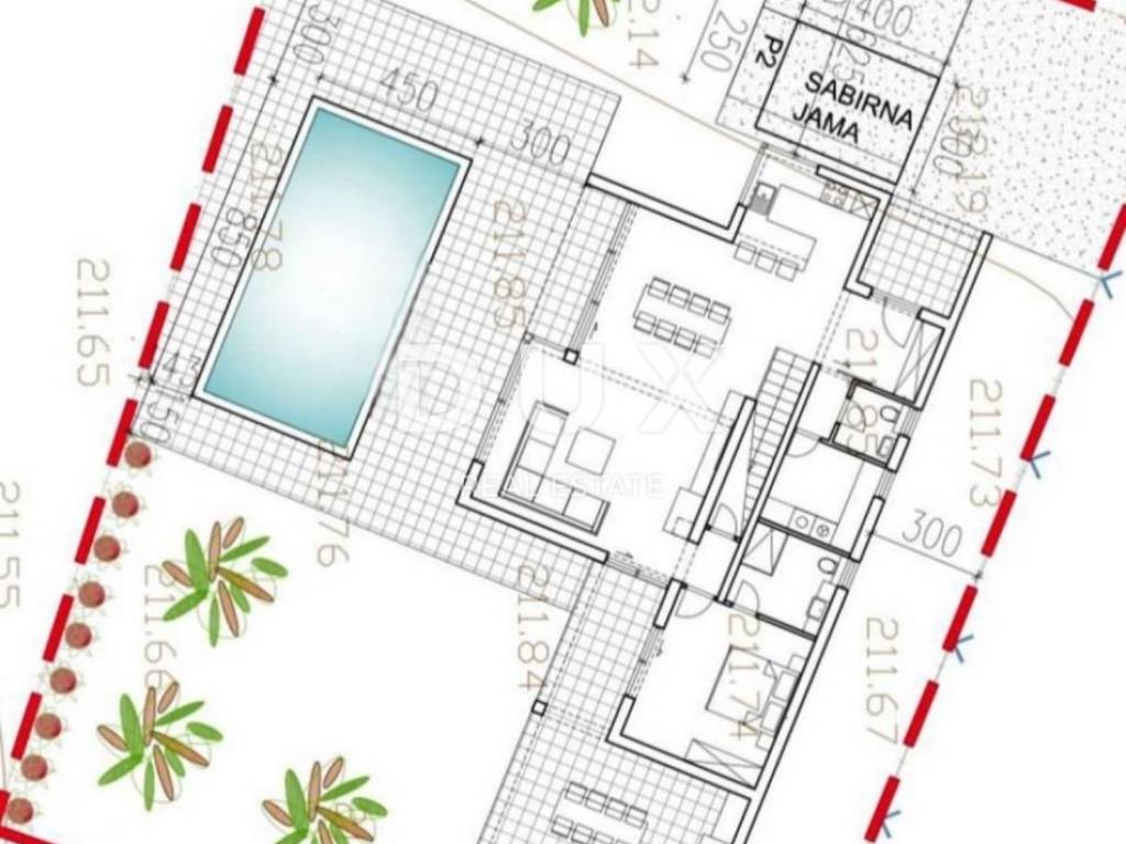 We proudly present a new construction project located in a small settlement near Svetvinčent and all the necessary facilities for everyday life. The investor plans to build 3 villas according to the system of a private villa complex at this location. During construction, one of the highest quality materials available on the market will be used, as well as one of the most modern construction techniques, with the goal of ensuring a high level of quality for each building. Attention is paid to every detail of the villa in order to ensure maximum comfort and quality of stay in the villa. In this way, the communication of the interior space of the villa is organized so that each room fully fulfills its intended role, with maximally simplified use of the building. We are sure that in this project you can find the property of your dreams, where you have the opportunity to stay all year round, considering the top-quality equipment of the villa and the high level of quality of all works. PROPERTY DESCRIPTION: The villa consists of a total of 200.80m2 of living space divided into two floors, ground floor and first floor. The ground floor of the villa consists of an entrance hall that introduces us to the comfortable and spacious living area of the villa, designed according to the system of open space without partition walls. It consists of a larger slightly separated kitchen, a comfortable dining room for the whole family with access to its own smaller terrace. Then a separate part of the ground floor is occupied by a larger and comfortable living room with access to a larger summer terrace. What makes the stay on the ground floor of the villa special is not only the airy and comfortable rooms, but also the glass walls with which the view/access to the landscaped garden extends, and through which also a greater amount of natural daylight passes. In addition to everything mentioned on the ground floor of the villa, there is additionally the first bedroom with its own bathroom and access to the already mentioned summer terrace. The guest toilet and "utility" room (laundry room) are located in the mentioned lobby of the villa. An internal staircase leads to the 1st floor of the villa, where there are 3 bedrooms, each with its own bathroom. One of which is the master bedroom with access to its own private covered terrace. An additional storage room is located on the same floor of the villa. DESCRIPTION OF THE GARDEN: The villa is located on a plot of 675 m2, which will be completely surrounded by a wall upon completion of construction, and decorated with Mediterranean plants with interesting lighting solutions to create a special atmosphere in the garden at night. Access to the garden from the paved road will be an electric portun with sensors, as well as parking for 2 to 3 cars on the garden. The central part of the yard will be occupied by a swimming pool with a sunbathing area located next to the summer terrace on the ground floor, and for your youngest family members there is enough greenery for carefree and safe play. ADDITIONAL AND TECHNICAL INFORMATION: * The villa is sold turnkey without furniture. * It will be equipped with smart air conditioners in every room, as well as underfloor heating in all rooms. * In the living room, future owners will have the option to install a wood or pellet stove, given the presence of a chimney. * Parquet intended for underfloor heating is installed in the rooms, while high-quality ceramics of larger dimensions will be installed in all other rooms. * The water in the pool goes according to the electrolysis system (salt water), and later, according to wishes, it is possible to install a water heating system. * Solar panels are being installed on the roof of the villa, which will be used to heat water throughout the house. * Future customers currently have the opportunity to influence the project themselves and adapt it to their needs and wishes as much as possible. LOCATION DESCRIPTION: The villa is located in a small, picturesque Istrian settlement, which consists of only a few family houses, stone houses, and holiday villas. The location is ideal for all those who prefer to avoid large crowds in cities, while being surrounded by nature, and yet located in the immediate vicinity of all the necessary facilities for the daily life of a modern family. The villa is thus only 6 km from the town of Vodnjan, where you can find everything you need for a safe and peaceful stay in the villa, such as; shops, drugstores, pharmacies, doctors, gas stations, supermarkets, markets, fishmongers, butchers, oil mills, wine shops, schools, kindergartens and the like. Equally, Juršići is only 3.5 km from the villa, where you can do a little quicker and shorter shopping in a small shop. Numerous beaches and beautiful sea can be found in Pula, which is only 20 km away, then Fažana, which is 12 km away, or in Peroj, which is 11 km away from the villa. In addition to everything mentioned, we must mention that the location of the villa is also well connected by traffic, so there are two accesses to the Istrian Ipsilon, which further connects you with the entire Istrian peninsula, the border with Slovenia and Primorsko Goran County, just 8 km from the villa. It is important for us to highlight the benefits of the villa's micro location. Thus, the villa is surrounded by numerous bicycle paths that lead through untouched nature, cultivated fields of olives and vines, as well as through less picturesque stone settlements. In addition to bicycle paths, this location is known for numerous walks, delicious and high-quality local food, excellent local wine, as well as first-class local olive oil. Numerous family taverns and restaurants are located just a few minutes' drive from the villa, where you have the opportunity to taste various delicacies of traditional Istrian cuisine. In short, we believe that this property is worthy of your attention, and that with the possibility of slight influ