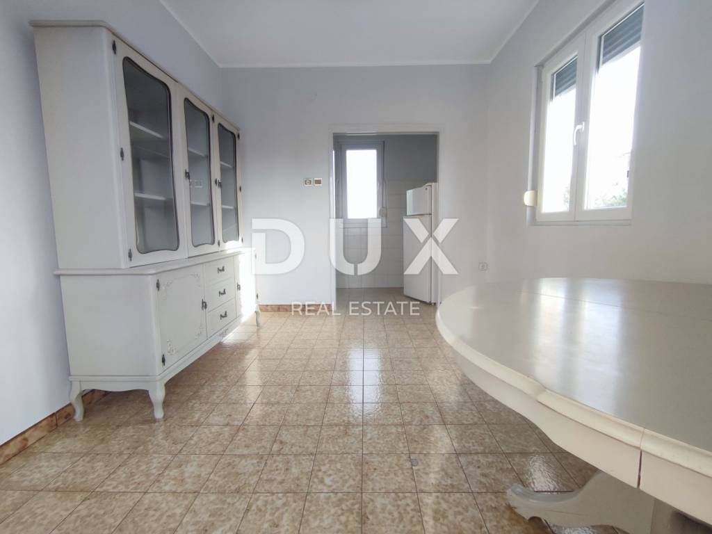 For sale is this spacious apartment of 83 m2, which together with the terrace and 2 balconies has a total area of 110 m2. The apartment is located in a wonderful location and close to the sea, the center and its facilities. It consists of an entrance hall, a living room with a balcony of 8 m2, a kitchen with a walk-through terrace of 15.2 m2, 2 bedrooms, one of which has another balcony, a bathroom and a storage room. The apartment is full of daylight and has a beautiful view from all 3 balconies. Located in a house with a separate entrance from the road and 1 parking space, then stairs leading to the entrance terrace and the front door of the apartment. Under the stairs there is another room that can be used as a storage room. Recently installed PVC joinery, complete apartment painted, entrance terrace paved with new tiles, and a fence is currently being installed. The floor in the living room and bedrooms contains oak parquet. In front of the property there is city gas that can be connected to it. The apartment used to be centrally heated with electricity. There is also a chimney. The apartment also has a separate entrance with stairs leading to the 200 m2 garden. 1/1 ownership, no encumbrances!