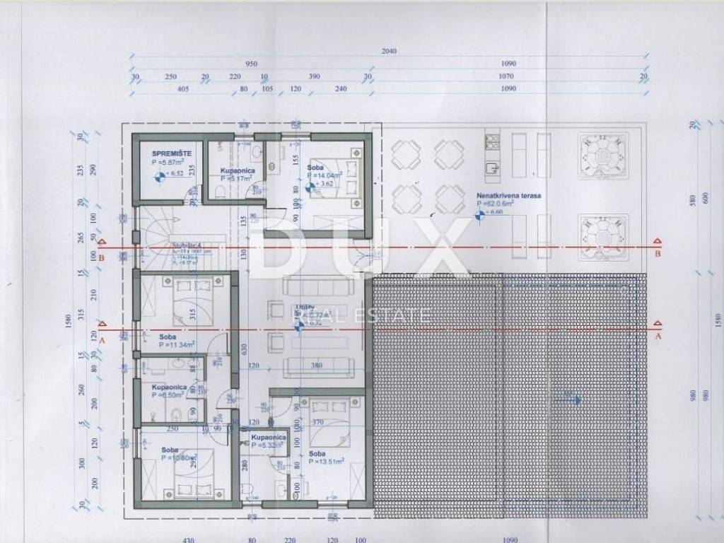 Na 2. etaži su smještene 4 sobe sa kupaonicama te prostrana terasa.