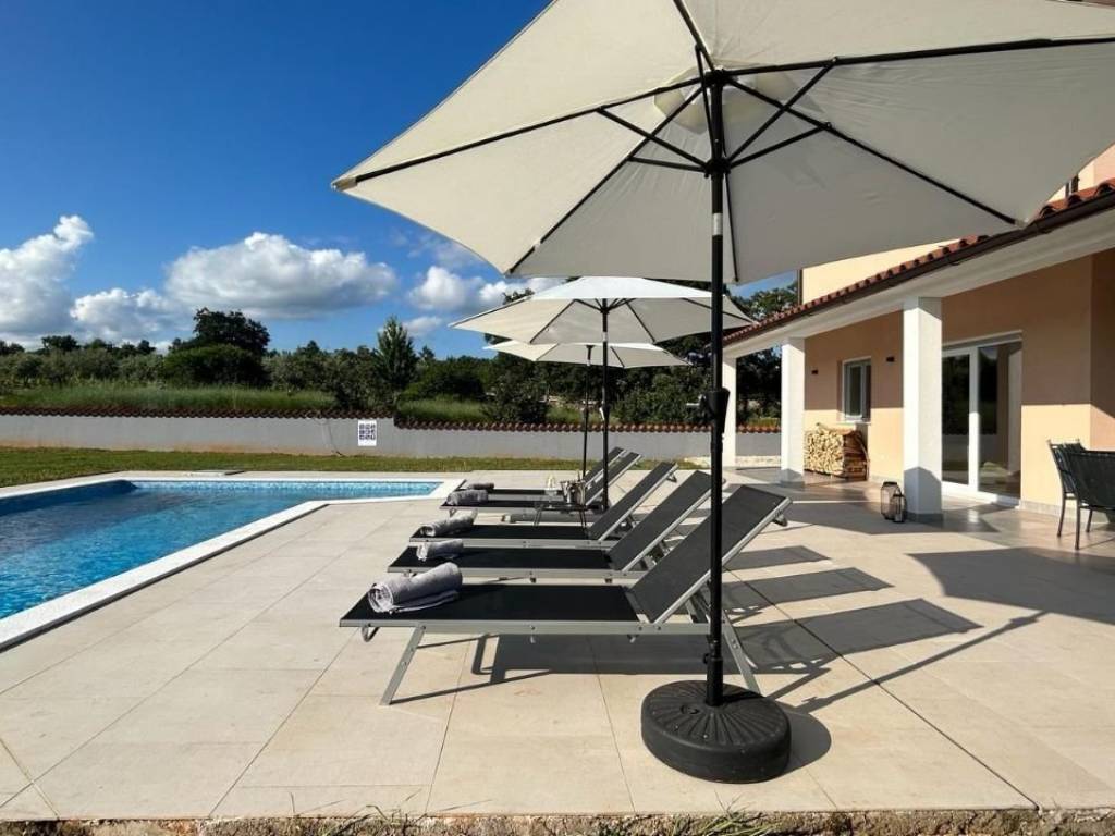 In the surroundings of beautiful Fažana is this exceptional villa with a wonderful view of olive groves and vineyards and a side sea view from the spacious terrace. Situated in a quiet location, this property offers an oasis of peace and privacy, while at the same time being only 10-15 minutes drive from the beautiful beaches of Fažana and the Brijuni Islands.