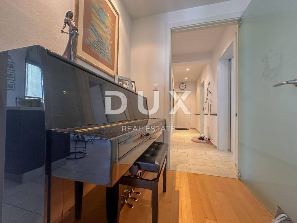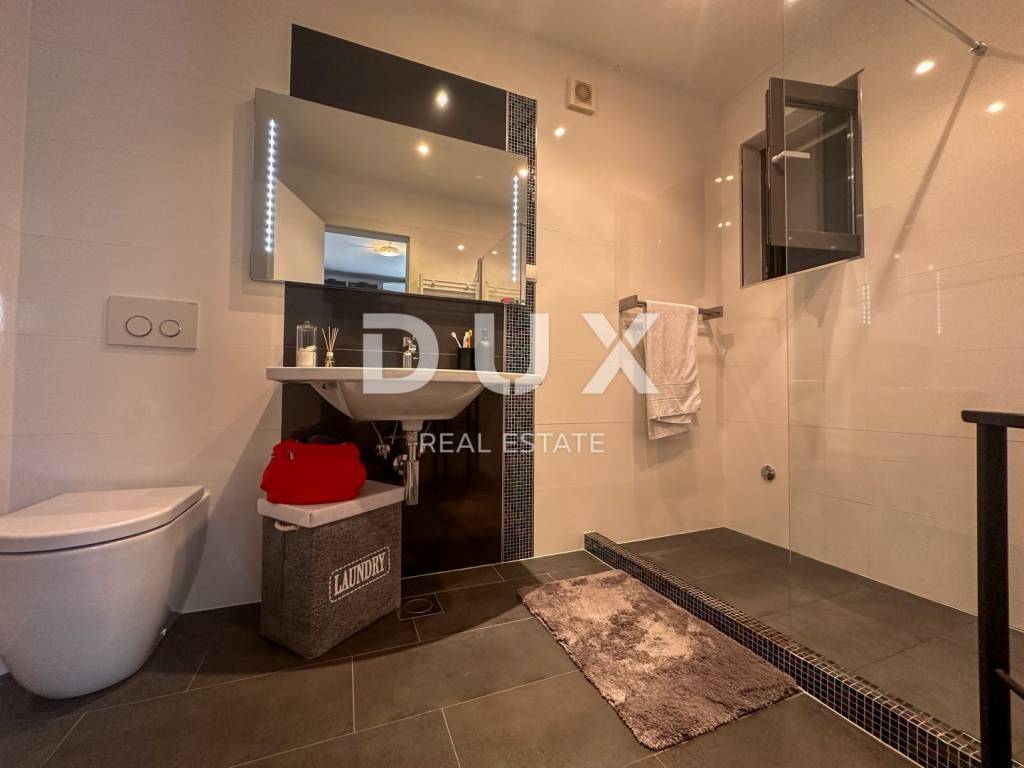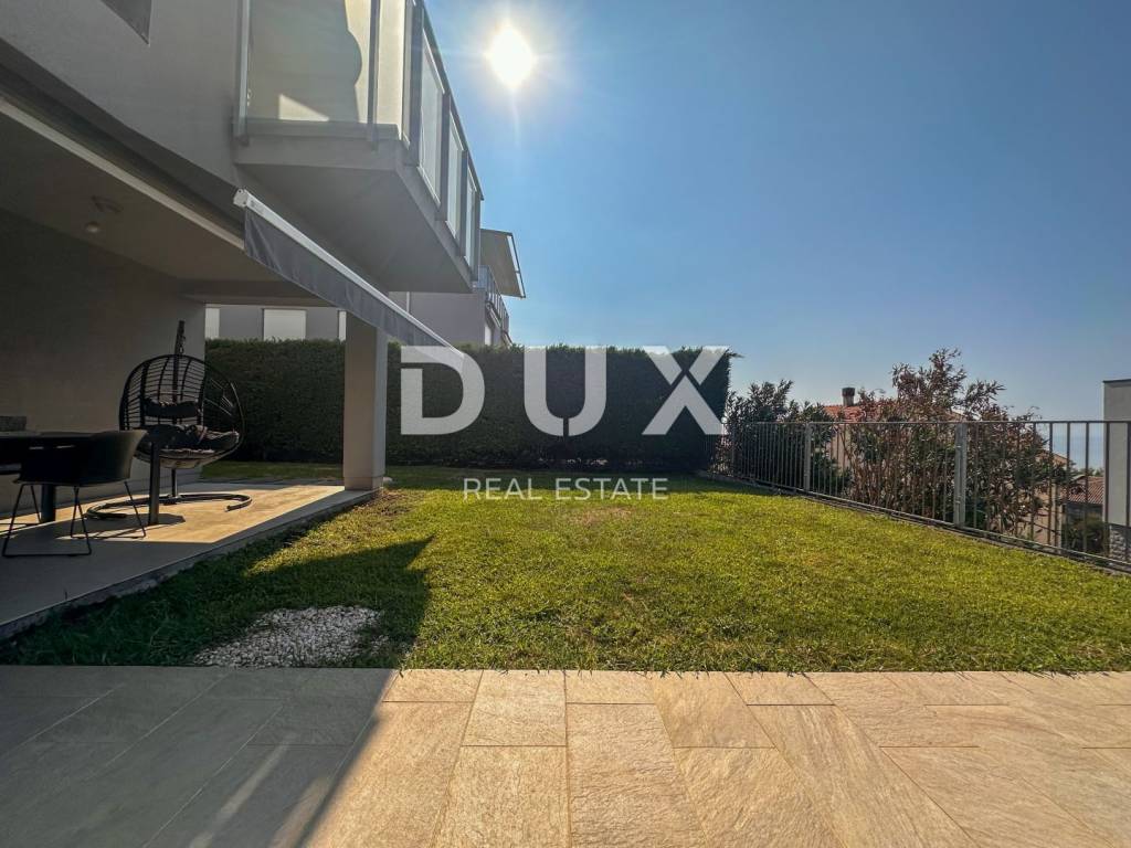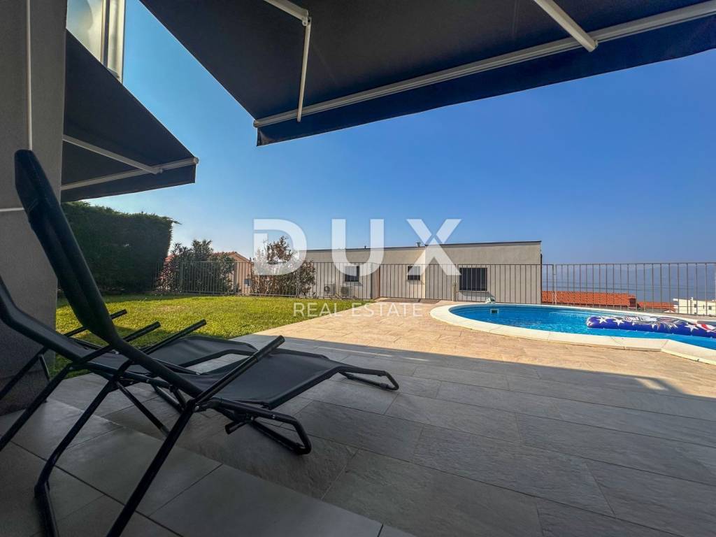 KOSTRENA - 3-bedroom apartment in a new building with a swimming pool, a garden and a sea view. We have to be proud of the fact that we have been offered a beautiful apartment, it is located on the ground floor of a smaller building of recent construction, which includes only three residential units, ensuring peace and privacy. The apartment has a carefully designed layout and includes three bedrooms, one of which has its own bathroom, ideal for additional comfort and privacy. The spacious living room is connected to a modern kitchen and dining room, making this part of the apartment a central place for gathering and relaxation. In addition to the main bathroom, the apartment also has a hallway and a storage room. The special advantage of this apartment is the large garden, which provides a real experience of luxury. The covered terrace is ideal for enjoying warm summer evenings, while the sun deck and lawn offer space for relaxing in the sun. The swimming pool in the yard provides perfect refreshment, and from almost all parts of the apartment, including the garden, there is a spectacular view of the sea and the surroundings, which ensures the experience of living by the coast. The property also comes with two parking spaces. The location of the apartment is extremely favorable. Located in a quiet area, it offers privacy and peace, and at the same time it is only a few minutes' drive from all the necessary facilities for everyday life, including shops, schools and the beautiful beaches of Kostrena. Dear clients, the agency commission is charged in accordance with the General Terms and Conditions. https://www.dux-nekretnine.hr/opci-uvjeti-poslovanja