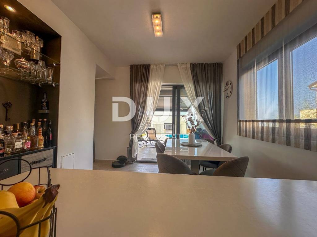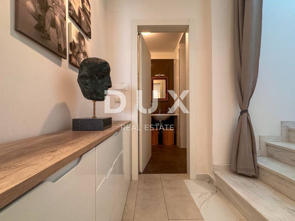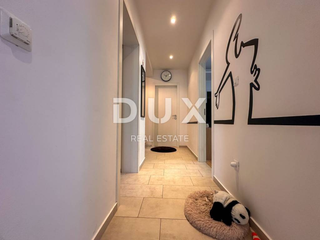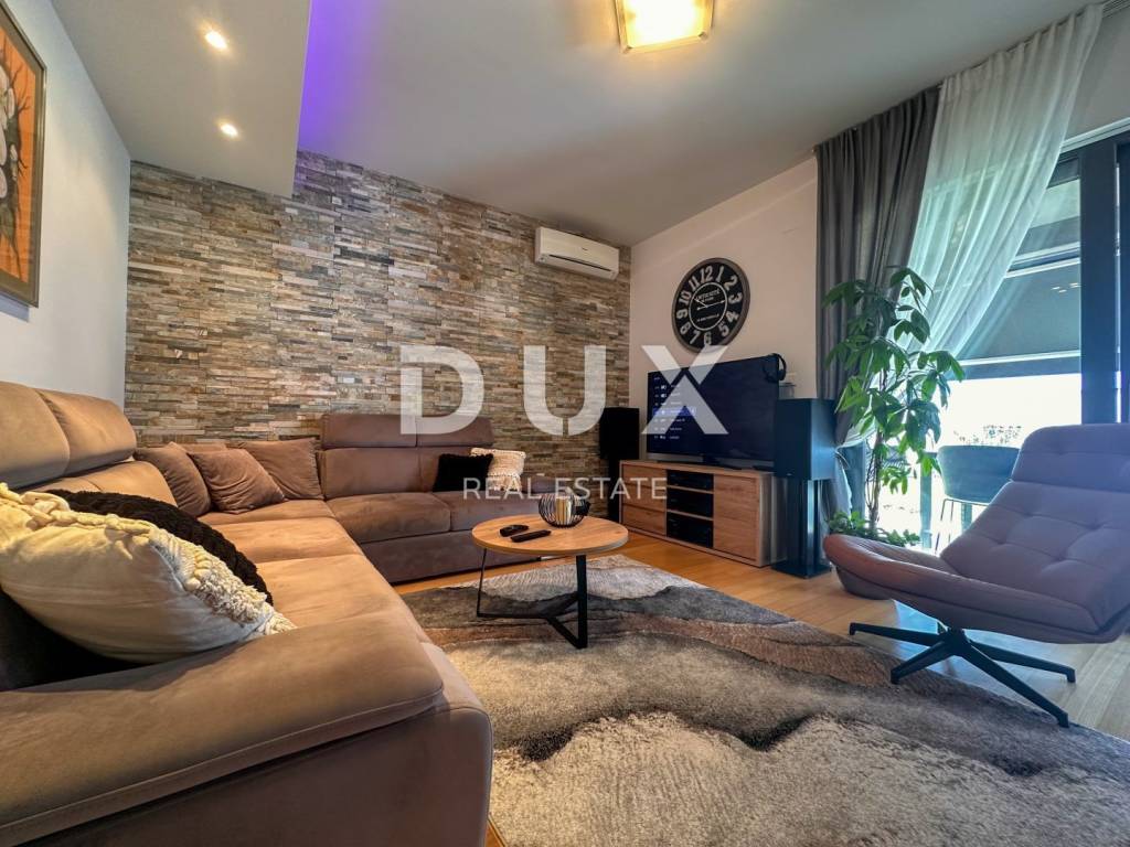 KOSTRENA - 3-bedroom apartment in a new building with a swimming pool, a garden and a sea view. We have to be proud of the fact that we have been offered a beautiful apartment, it is located on the ground floor of a smaller building of recent construction, which includes only three residential units, ensuring peace and privacy. The apartment has a carefully designed layout and includes three bedrooms, one of which has its own bathroom, ideal for additional comfort and privacy. The spacious living room is connected to a modern kitchen and dining room, making this part of the apartment a central place for gathering and relaxation. In addition to the main bathroom, the apartment also has a hallway and a storage room. The special advantage of this apartment is the large garden, which provides a real experience of luxury. The covered terrace is ideal for enjoying warm summer evenings, while the sun deck and lawn offer space for relaxing in the sun. The swimming pool in the yard provides perfect refreshment, and from almost all parts of the apartment, including the garden, there is a spectacular view of the sea and the surroundings, which ensures the experience of living by the coast. The property also comes with two parking spaces. The location of the apartment is extremely favorable. Located in a quiet area, it offers privacy and peace, and at the same time it is only a few minutes' drive from all the necessary facilities for everyday life, including shops, schools and the beautiful beaches of Kostrena. Dear clients, the agency commission is charged in accordance with the General Terms and Conditions. https://www.dux-nekretnine.hr/opci-uvjeti-poslovanja