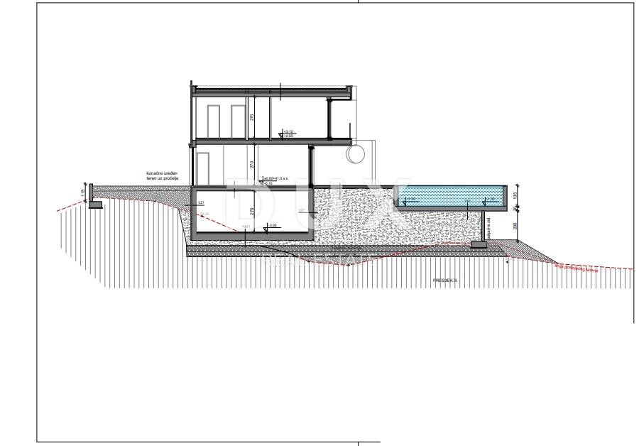 Prema projektu, vila je neto stambene površine 188.10 m2 te će svoju površinu prostirati kroz podrum, prizemlje i prvi kat.