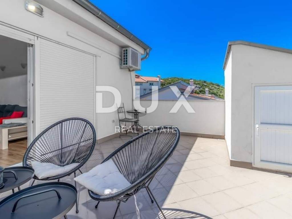 We are selling two beautiful apartments of 131 m2, of which the apartment on the second floor is 81 m2, and the apartment in the attic is 50 m2 with a roof terrace. The apartments are located in a family house with three other apartments, in a quiet environment. The apartment of 81 m2 is located on the second floor of the house and consists of two bedrooms, a kitchen with a dining room, a living room, a bathroom and especially a toilet. The rooms are spacious and sunny, and each opens onto a shared balcony with a wonderful view of the city and the sea. The apartment, which has 50 m2 and a spacious roof terrace, is located in a high attic and consists of one bedroom, a kitchen with a dining room, a living room, a bathroom and a storage room. The spacious terrace offers an open view of the sea. The apartments are completely adapted, modernly furnished, with separate entrances. Each apartment is equipped with air conditioning and has one parking space. The apartments are ideal for two families, for investment, as a long-term or tourist rental. For all other information, contact the agent.