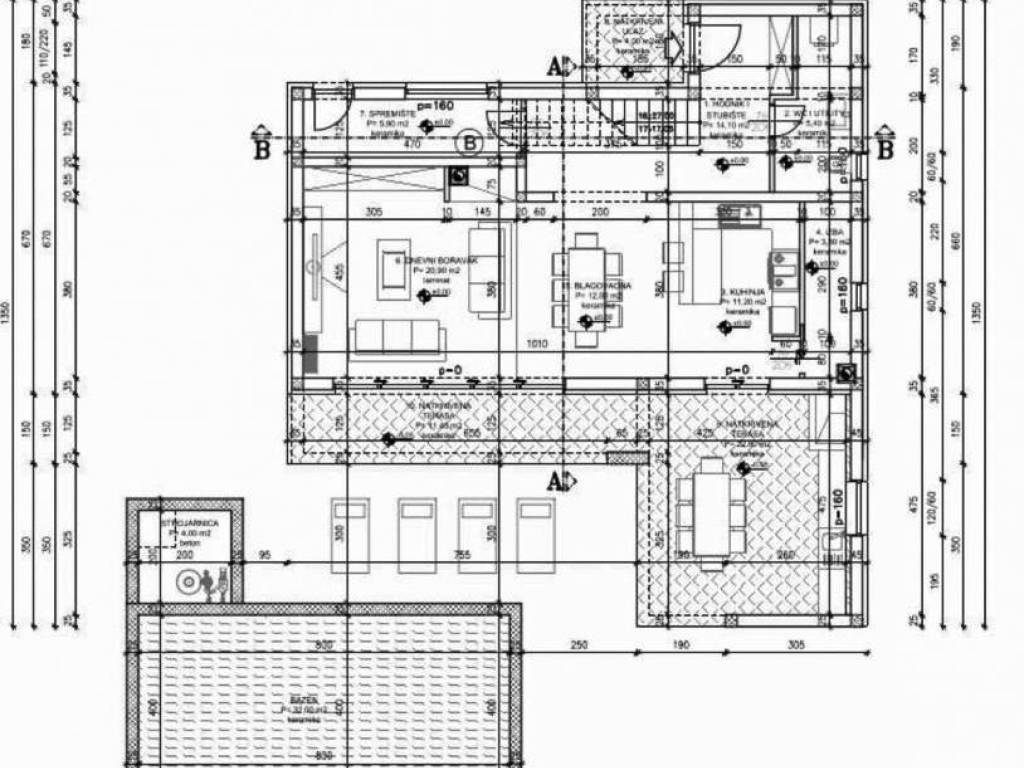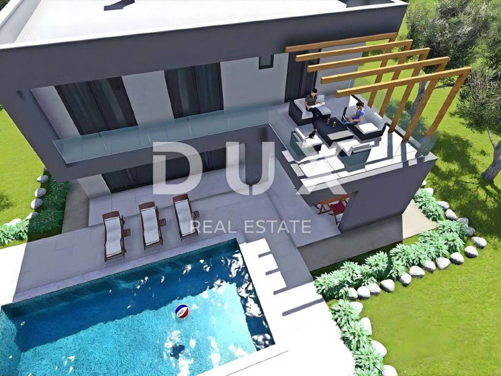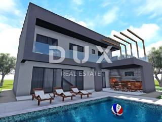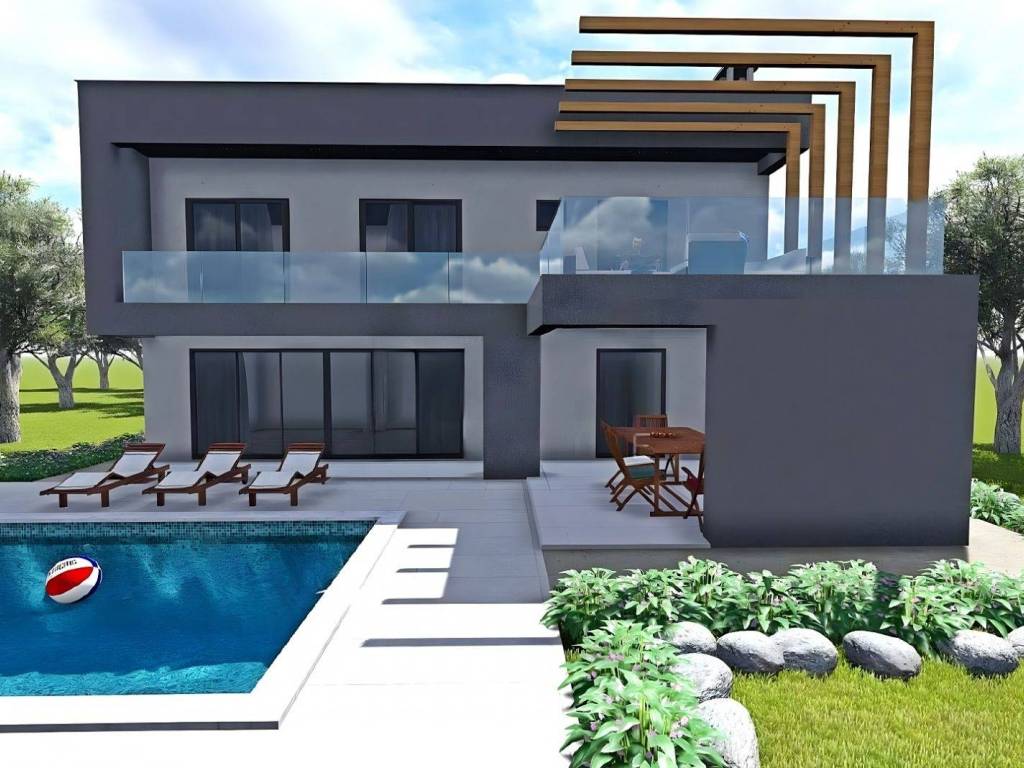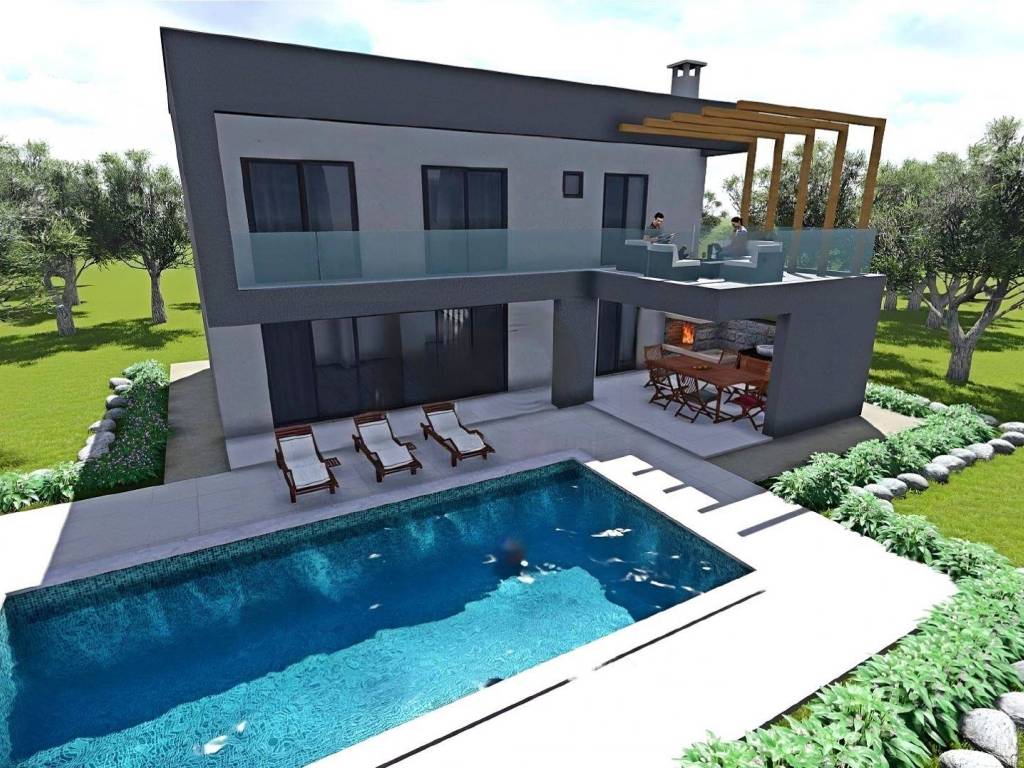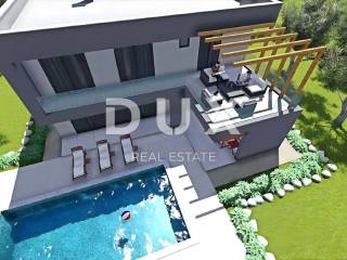 On the southeast coast of Istria, where the green hills meet the sea, where nature and heritage come together, there are two towns with different but mutually complementary characters - Labin and Rabac. The picturesque town of Labin rises on a hill 320 meters high, only four kilometers from the white pebble beaches in Rabac. Intertwined with rich history and mining that marked this region, Labin, which was declared an independent republic for a short time, is today a fascinating city of contradictions; old and new, history and present, tourism and art. Not far from the town of Labin, there is a house for sale with a swimming pool under construction. It is located in a gentle settlement whose location offers an authentic experience of a small Istrian town, intimacy and relief from all the hectic effort and noise, and at the same time close enough to the sea and the center of the town of Labin with a range of facilities. With its modern architecture, the house does not disturb the environment, but creates a synergy of natural surroundings and modern design. It was conceived as one residential unit that combines elegance, functionality and comfort on two floors. The ground floor consists of an open-concept space that unites the kitchen, dining room and living room with access to a covered terrace that contains a summer kitchen, guest toilet and storage. The first floor consists of an entrance hall, three bedrooms with private bathrooms and a partially covered terrace. The stated price refers to the construction of the residential building up to the stage of rough work, which includes preparatory work, excavation and installation of foundations, construction of external and dividing walls, roofing and sheet metal work and external carpentry. The price does not include finishing works, as well as landscaping of the garden and construction of the swimming pool. The excellent location and the spatial organization of the interior and exterior of this property provide an opportunity for a comfortable family life or an investment investment in a tourist rental business.