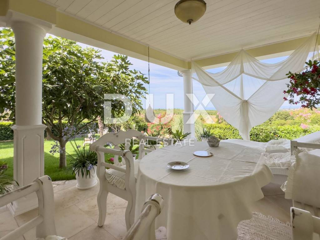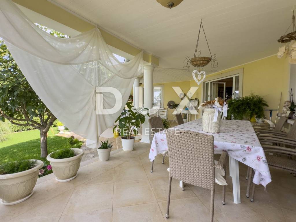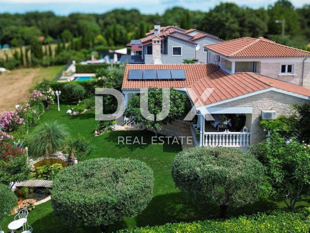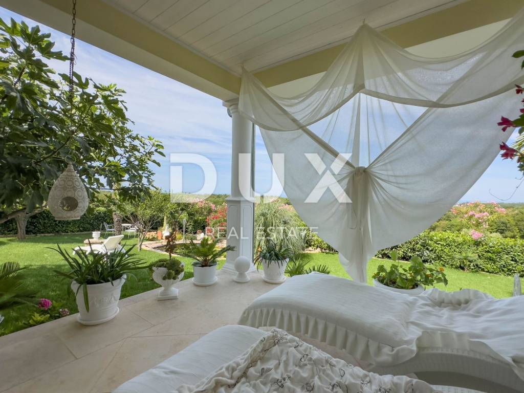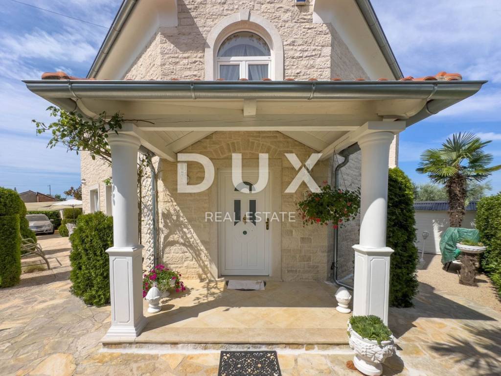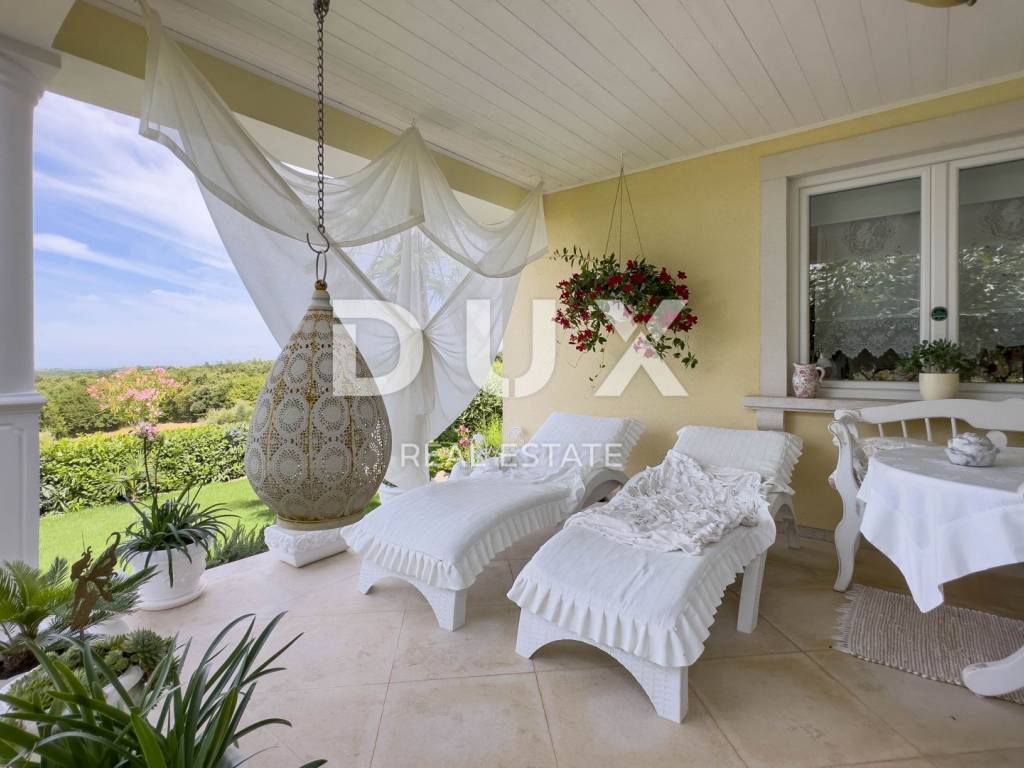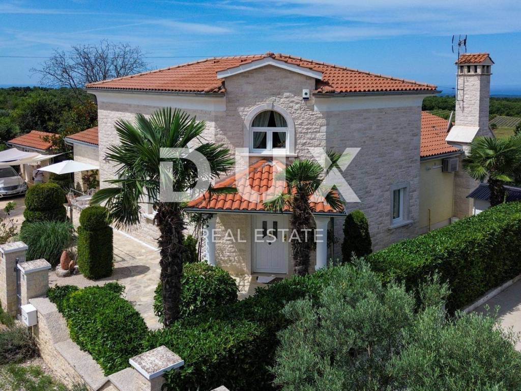 We are proud to present this superb and unique stone villa, located in a small settlement of only a few houses, 3 minutes' drive from the center of Višnjan. It is a villa with a unique character that simply leaves all its visitors speechless, already at the very entrance to the villa. This villa is a private property that was never rented out, but was used as a private family home, adapted to all the needs of today's modern family. Head with us towards this rare opportunity and become the owner of a perfect property that flawlessly combines tradition with modern conveniences of life. DESCRIPTION OF THE VILLA: This villa thus consists of a total of 265m2 of living space, which is divided into two floors, ground floor and first floor. On the ground floor of the villa, at the entrance, we are greeted by a graceful lobby that acts as a center that connects the ground floor and the first floor. Passing through the lobby, we access the living area designed according to the "open space" system, without partition walls. Here you can spend your time with friends and family in a comfortable living room, which is decorated with two details, namely a functional high-quality wood-burning fireplace, and the second detail is a glass wall that lets in a rich amount of daylight into the space, and through which stretches an unobstructed view of the garden, vineyard fields and a panoramic view of the sea. Next to the living room is the central room of the ground floor, a spacious dining room, enough for the whole family and friends, while next to it is a luxuriously equipped kitchen with its own storage. What we must point out is that from the ground floor of the villa there is an exit to a larger and more spacious covered summer terrace where there is a larger dining table, a place to rest, relax and read your favorite book, all with a unique view of the sea and greenery. On the ground floor of the villa there is an additional master bedroom with its own bathroom and access to the already mentioned terrace. Additionally, next to the lobby, there is a guest toilet, as well as a laundry room and a technical room. The internal picturesque staircase leads to the upper floor of the villa, where there is a smaller bedroom, which is currently used as a study, then a spacious bathroom, and an additional larger bedroom with its own covered terrace. This terrace is perfect for drinking a glass of your favorite wine during the sunset, and the view that opens up leaves you speechless. DESCRIPTION OF THE GARDEN: The villa is located on a spacious garden consisting of 826m2. By accessing the villa with the help of an asphalted road through an electric sliding gate, we reach a parking space for 3 to 4 cars, one of which is covered. The entire garden is fenced and hidden from view, and it is adorned not only with beautiful stone details but also with a perfectly maintained garden with numerous Mediterranean plants. On the back side of the garden, where the mentioned covered terrace of the villa is located, there is enough space left to build a swimming pool according to the needs and wishes of the future owners. Currently, there is a private pond on the site with a wooden bridge that adds to the villa's warm and unique feel. There is also a slightly separated and fully equipped summer kitchen, perfect for preparing your favorite delicacies. ADDITIONAL INFORMATION: This villa represents a unique property on our market, and we are sure that the new owners will recognize this opportunity in the same way and thus fulfill their desire to find the perfect home. * The villa is sold furnished, without personal belongings. * The villa has underfloor heating installed on the ground floor in all rooms, * Air conditioners have been installed in all rooms of the villa, and gas central heating has been implemented. * There is parquet flooring in the living room and all bedrooms, while high-quality ceramics are found in all other rooms. * On the side of the villa there is a smaller auxiliary building that is used as a storage room for all the equipment needed to maintain the garden. * The ownership of the villa is in order, owner 1/1, without financial burden, and the villa has all the necessary documentation. For any additional questions, necessary information about the villa, as well as the desire to organize an appointment to view the villa and its location, please feel free to contact us at any time.