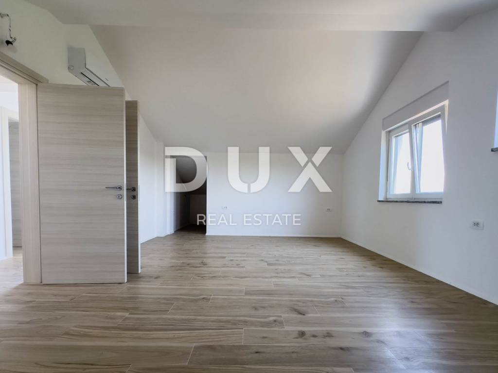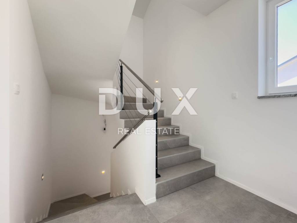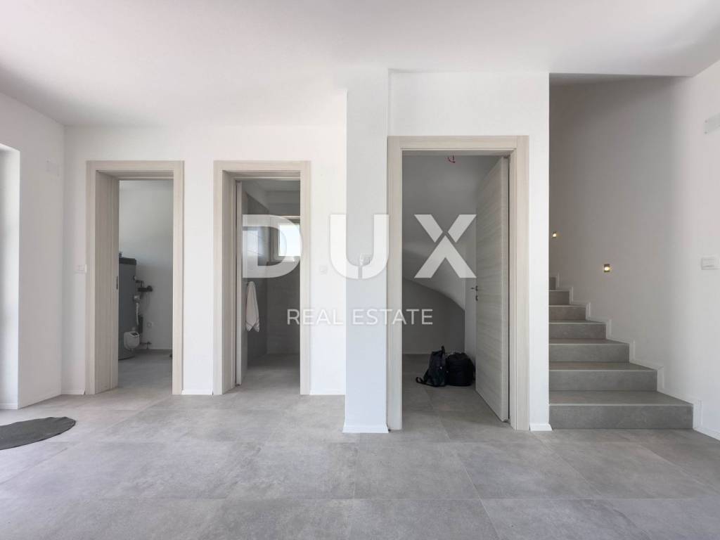 We are mediating the sale of a beautiful family house in Rasopasno near Malinska. The house was built in 2024 and is located near the sea, yet in a quiet location! Built on a beautiful, spacious plot, this property extends over three floors with a roof terrace. It consists of a living room with a kitchen, a bathroom, a boiler room and a covered terrace on the ground floor, while there are three and four bedrooms on the 1st and 2nd floors (one bedroom in the attic is not partitioned in case two bedrooms are enough for future buyers, and in this variant the attic floor can become a space for socializing and entertainment). In addition, on the 1st floor, each bedroom has its own bathroom, one bedroom has its own balcony, and the second balcony is on the north side and is perfect for morning socializing (because of the orientation). In addition to being a space for socializing and entertaining, the attic floor also has a wonderful roof terrace with a jacuzzi connection and a view of the sea. If it is a larger family, the room in the attic can be divided into two additional bedrooms. A large bathroom completes this beautiful floor. The bathrooms have underfloor electric heating, a combination of PVC and aluminum in anthracite color, air conditioners and high-quality ceramics and sanitary ware fit perfectly into the look and equipment of this property. The garden has enough space for parking, a swimming pool, a gazebo and a garden with Mediterranean plants.