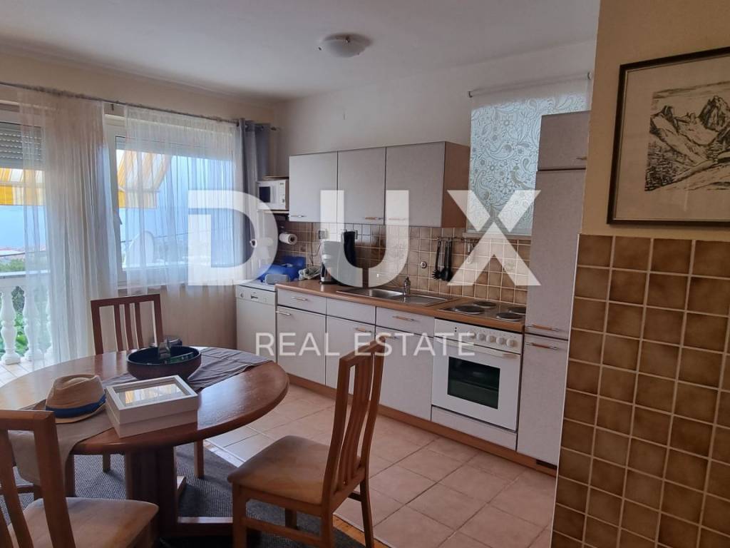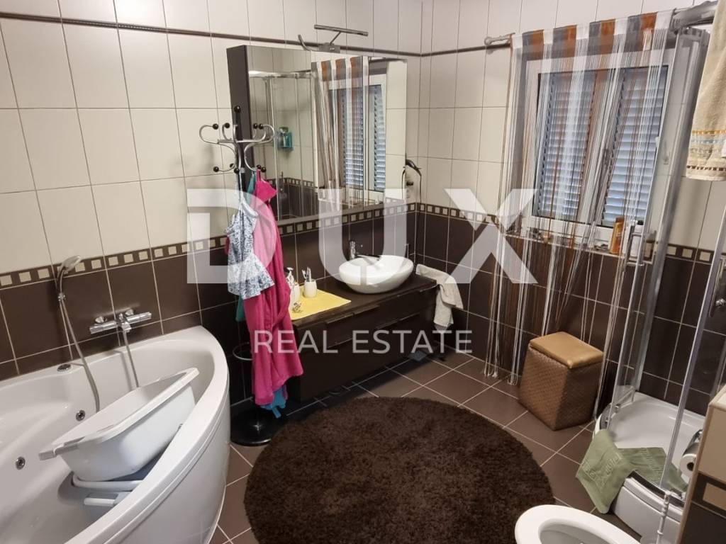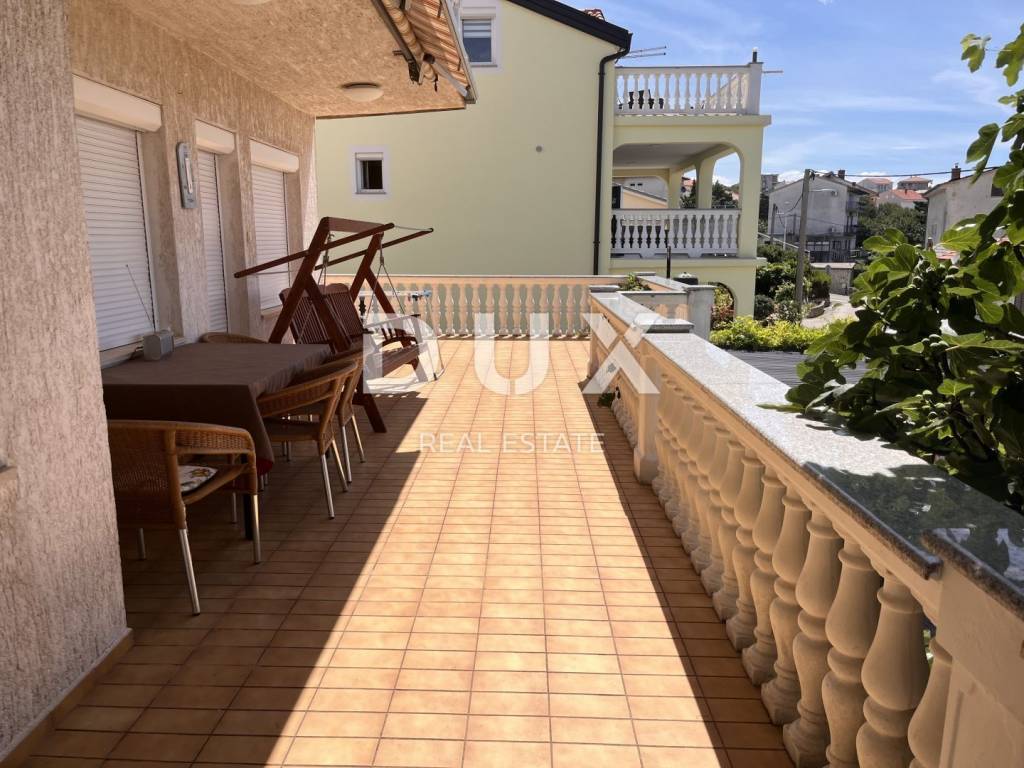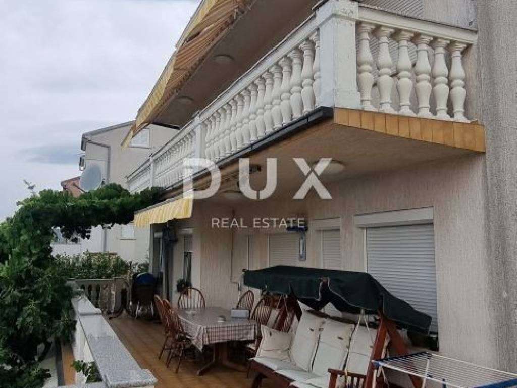 We mediate in the sale of a detached house with three apartments. It is located in a quiet neighborhood of Novi Vinodolski, with a beautiful view of the sea. On the ground floor of the house there is a studio apartment, a room with a bathroom and a garage. The external stairs lead to the first floor, where there is an apartment with two bedrooms, a bathroom, a toilet, a room, a kitchen with a dining room, a living room and a spacious terrace with a summer kitchen, a toilet and a living room, which together form a space for socializing. Internal stairs lead to the next floor, where there are three bedrooms, two bathrooms, a kitchen with a dining room, a living room and a balcony with a beautiful view of the sea. Inside the spacious garden there is a barbecue, a garden and a parking lot for several cars. Property ideal for living, vacation or tourist rental. AGENT'S RECOMMENDATION!
