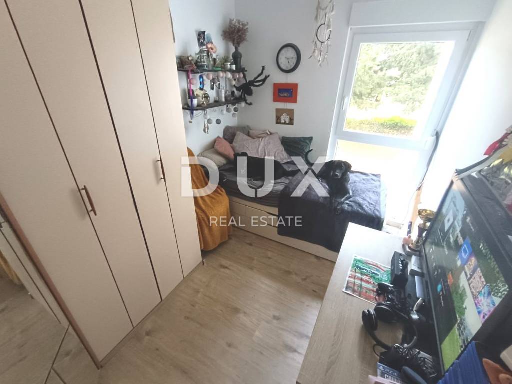 The apartment is located in a building that has an occupancy permit and a new facade was made in 2020 (reserve 15 e). The building has an elevator. The apartment is located on the ground floor and consists of 2 bedrooms, hallway, bathroom, kitchen and dining room, pantry, separate living room, closed terrace and a small balcony with a total living area of 69.49 m2. The apartment is air-conditioned, with new external PVC joinery, heating with a thermal stove, a working chimney, a gas boiler, and gas is used for cooking. Possibility of floor heating with gas. Possibility of 3 bedrooms from the living room. In an excellent position, close to all facilities for the life of a modern man, such as shops, super markets, pharmacy, kindergarten, school, playground, post office and public transport. Just a few minutes' easy drive to the first beaches. Dear clients, the agency commission is charged in accordance with the General Business Conditions: www.dux-nekretnine.hr/opci-uvjeti-poslovanja