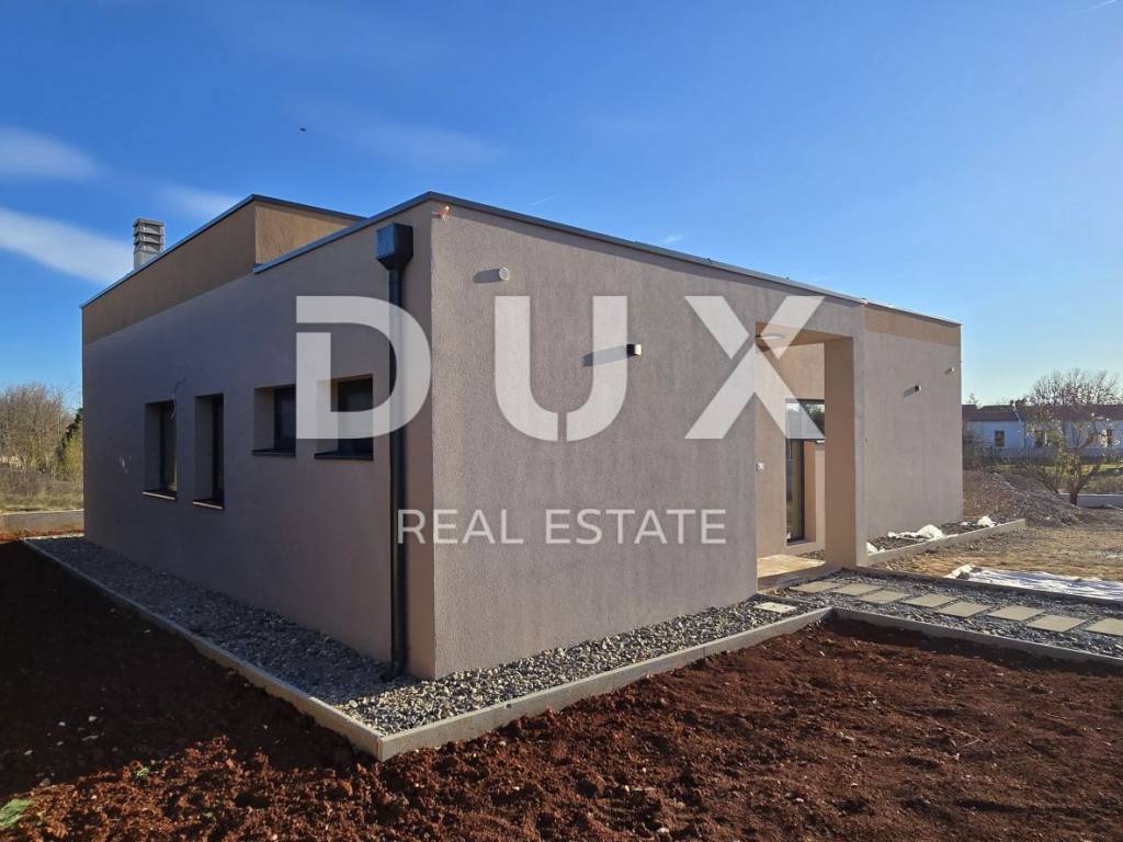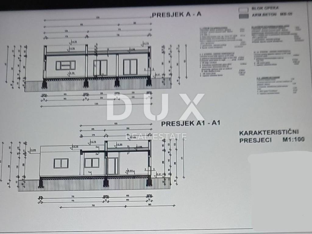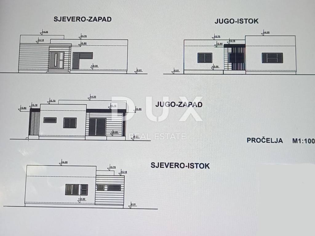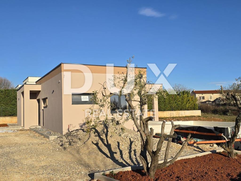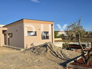 The Renaissance town of Svetvinčenat is one of Istria's jewels with a rich tourist offer and numerous events that take place in the extraordinarily attractive historical spaces of this town. The symbol of the place itself is the Renaissance Placa square with the Morosini-Grimani castle. This special town has a rich tradition, interesting and diverse programs, the most prominent of which are the Medieval Festival, the Cheese Festival and the Dance Festival. In the vicinity of Svetvinčent, this interesting one-story house with a swimming pool is for sale. The house has an area of 106 m2 and contains a hallway, kitchen, living room with dining room in an open space concept, toilet and laundry room with storage. The sleeping part of the house includes a hallway, two bedrooms and a shared bathroom. From the living room we go out to a covered terrace, which is connected to the garden area of 548 m2, where there is a swimming pool for enjoying the summer months. Two parking spaces are provided for your vehicles. The house will be built with external and internal load-bearing walls of "Porotherm" brick blocks, ab beams and columns. The roof construction is made of concrete for tilting, with steam and waterproofing and final protection against insolation. The load-bearing walls will have proper vertical and horizontal bracing from ab cerclage 25/25cm. The facade is thermally insulated with folded styrofoam and smooth plaster. Windows and balcony doors will be equipped with PVC hexagonal profiles and triple heat-insulating glass. The first phase of the pool, the heating system via air conditioning and the chimney for pellets is planned. The house will have an eco septic tank that will ensure environmentally friendly waste water disposal. The price refers to the house with completed insulation, facade and installed carpentry, while the interior will be brought to the first stage (electricity, water). It is possible to agree on the completion of the interior of the house with a price adjustment. This interesting house, in this condition, offers its future owners to complete it according to their wishes and finalize their future home or house for investment. Dear clients, the agency commission is charged in accordance with the General Terms and Conditions. www.dux-nekretnine.hr/opci-uvjeti-poslovanja