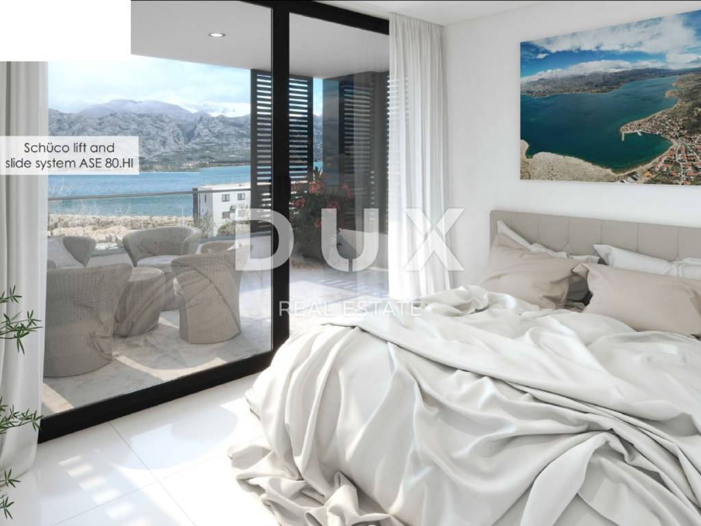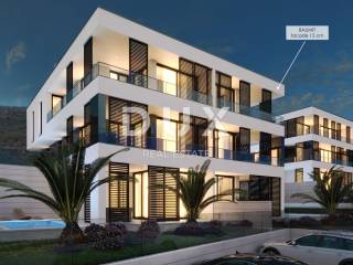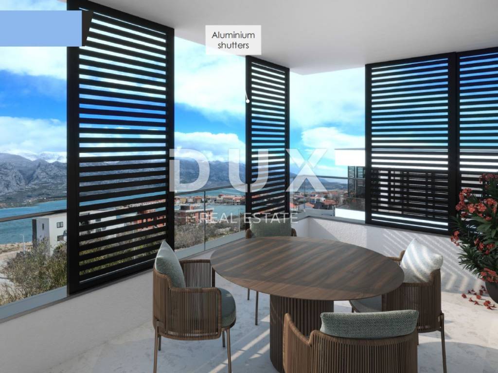 We proudly present this luxury apartment in Vinjerac near Zadar. The apartment has an impressive view of the sea and the Velebit mountain, and such a combination makes this position truly special. The apartment consists of an open kitchen with a dining room and a living room, two bedrooms, two bathrooms, a covered terrace, a garden, a swimming pool and one parking space. Materials and equipment: - solid concrete - reinforced concrete slabs - Baumit facade with 15 cm HI styrofoam - Schuco windows and doors Ase 80 Hi - aluminum shutters on the balconies - natural Brač stone on the facade and walls - Italian porcelain with a mirror effect (detail on facades) - parking video surveillance with automatic sliding doors - automatic outdoor lighting / LED lighting - Mediterranean gardens (palms, oleander, pitospora, lavender...) - gravel + project for parking and direct access to the sea - Rubinetti Paffoni for bathrooms - Italian porcelain for Memento walls and floors - the entire apartment has underfloor heating - the entire apartment is air-conditioned (heating, cooling) - energy class A - private pools and gardens, outdoor showers, summer kitchens, jacuzzi... Vinjerac is a picturesque fishing village surrounded by nature parks, just a few minutes' drive from the connection to the Maslenica highway to the Zagreb-Split highway. Tucked into the sea and hidden from urban life, Vinjerac cherishes the identity of past times. It is an oasis of peace and relaxation, unknown to tourists, the place is promising and generous. The sea is crystal clear and the panorama is spectacular. In the nearby harbor you can see many types of freshly caught fish, because fishermen and sailors are part of the tradition of Vinjerc. The proximity of the sea and the mountain Velebit, combined with a constant stream of fresh air, make Vinjerac an ideal place for people with breathing difficulties. The power of morning freshness and the smell of the sea revitalizes every person exhausted by work and modern life. The whole atmosphere is rounded off by friendly hosts who preserve the traditions and customs of Vinjerc. Every visitor will be impressed and will be able to feel a real home. Availability and specifications are subject to change. Furniture: symbolic pictures. Handover with all permits - spring 2025. Don't miss the opportunity! Now is the right time to take advantage of this rare opportunity and become the owner of a beautiful apartment in Vinjerac. Contact us today to learn more and book your tour! The real estate is in the VAT system (legal entity) and the buyer does not pay real estate sales tax.