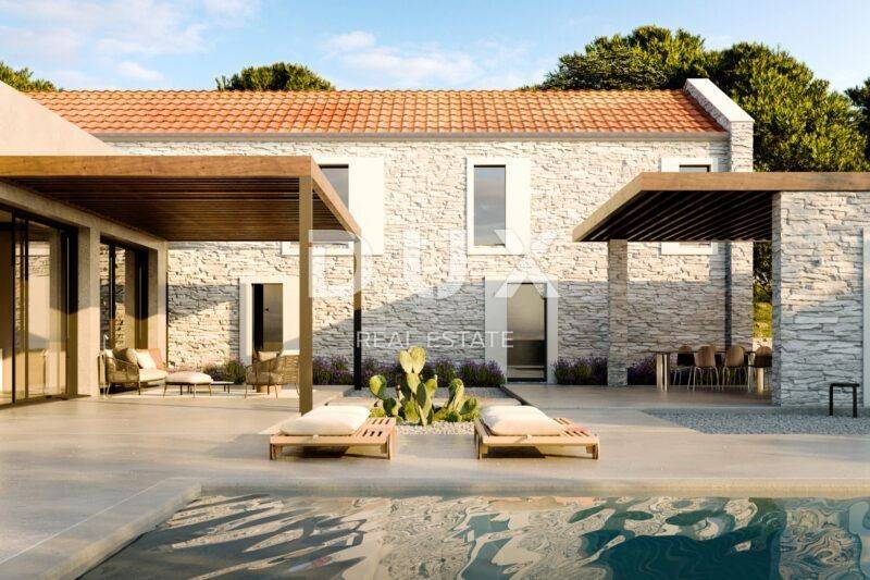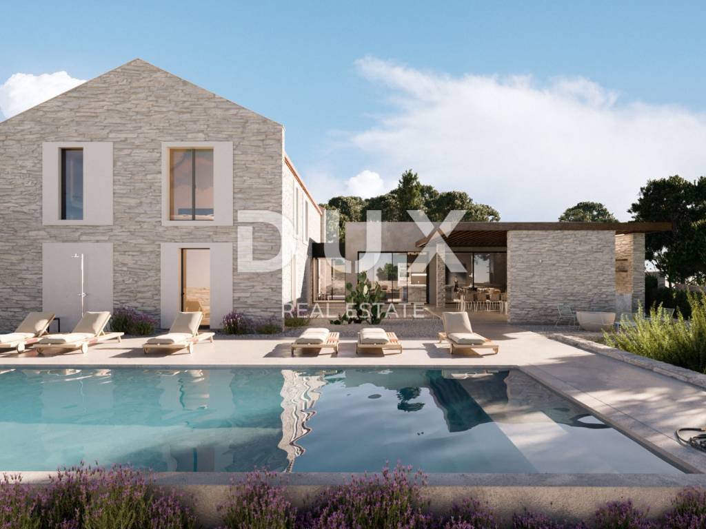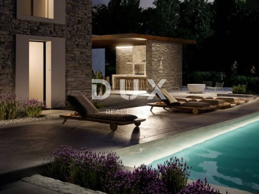 We proudly present a new project of exclusive villas, which in their own special way combine modern elegance and Mediterranean tradition, and create a unique opportunity for an exclusive lifestyle, and are located in a picturesque small settlement in the vicinity of Svetvinčenat , which is known as "little Tuscany" because of its beautiful landscapes, cultural wealth and incredible gastronomy. It is a luxurious project of four villas that not only offer refuge from the hustle and bustle of modern life, but also represent incredible proof of architectural solutions. With convenient access to Istria's historic towns, as well as crystal clear beaches, these villas promise a lifestyle of incomparable sophistication and tranquility. Designed with a focus on even the smallest details with the aim of a high level of elegance, and an excellent connection with space and nature, these villas represent the ideal solution for all those who are looking for the "wow" factor and uniqueness. These are villas that are only 20 minutes from the picturesque town of Rovinj, 30 minutes from Pula Airport and a short drive from the unavoidable town of Opatija. Join us in this incredible opportunity and have a unique experience, and it is very possible that your search for the ideal real estate will end there. PROPERTY DESCRIPTION: From the meticulously thought-out decoration that is in harmony with the space and nature, to the top smart technology equipment that raises the bar of home safety and practicality, every detail has been meticulously planned to ensure an incomparable living experience with a high level of comfort and luxury. The villa consists of a total of 300 m2 of living space, within which it offers a luxurious living space perfect to leave every visitor speechless. The total area of the villa is divided into two floors, ground floor + first floor. Upon entering the villa, we are first greeted by a vestibule with space for a wardrobe, which then turns into a corridor and the ground floor space is divided into two parts, a private bedroom and a part intended for daily life. The part intended for daily life is designed according to the "open space" system of space without partition walls, where you have the opportunity to spend your stay in a comfortable modern kitchen with an island, then a spacious dining room sufficient for the whole family, as well as a spacious living room with a fireplace. What makes staying in this part of the villa special are the glass walls with the help of which the space opens up to the covered outdoor area of the villa of a total of 100 m2, complete with spacious terraces of 80 m2, a large swimming pool and landscaped gardens with lavender, olive trees and aromatic bushes, creating a sensory refuge . The more private part of the ground floor consists of one bedroom with its own bathroom, then a SPA zone with a sauna and a bathroom, from which there is a wonderful view of nature and the landscaped garden. Likewise, in this part of the ground floor there is a guest toilet, a technical room, and a modern staircase that leads to the first floor of the villa. The first floor consists of three comfortable en-suite bedrooms, which are connected by a spacious corridor. Each bedroom together with its bathrooms measures 30 m2. High ceilings and sloping roofs in the rooms create a special atmosphere with natural lighting during the morning hours, and give the space a sense of peace and luxury. Each bedroom also has its own walk-in closet, as well as a desk or boudoir mirror, and a couch that is ideal for reading and relaxing. Each of the bathrooms includes a walk-in shower, his and hers (double) sinks, built-in mirrors and separate toilets with storage space. Each bathroom is decorated with a full height of glass with a transparent film that provides enough daylight into the bathroom while still remaining hidden from outside views. Simply put, the villas are designed in such a way as to provide their owners with a high level of comfort, with maximum privacy and an enviable level of luxury, all with a high standard of quality and safety of life. GROUND DESCRIPTION: Give yourself a chance and embrace the Istrian sun with spacious open-air living areas, including terraced landscapes with lavender and olive trees, a large swimming pool and sunbathing area, all with beautiful views and an intimate connection with nature. The villa is located on a plot of 1196m2, with a carefully thought-out arrangement that blends the villa with the space and nature that surrounds it. Special attention has been paid to the outdoor space, so each of the terraces has a southwest orientation with a view of the valley and the village, and at the same time a view of the sea with the sunset. The main terrace in the garden of the villa is accessed directly from the living room, which achieves the perfect cohesion of outdoor and indoor living. Equally, while you rest and relax in the SPA area of the villa, you have the opportunity to step towards the garden and the pool area. The outdoor living area is fully covered, so you can use it in all weather conditions. It includes an area for sitting and entertaining, a dining room and an outdoor kitchen with a built-in grill and a kitchen island ideal for spending time with friends and family. The outermost part of the garden is occupied by a spacious heated pool with a salt water system (electrolysis), which is surrounded by a sunbathing area and an outdoor shower. What makes a special feeling while using the pool is the fact that you feel merged with nature in an exclusive and maximally private location. The villa's grounds are completely fenced and hidden from view, and you don't have to worry about your youngest family members and pets because the green fields on the grounds are an ideal space for carefree play and fun. There is also enough covered parking space for 2 to 3 cars in the garden. ADDITIONAL INFORMATION: Combining traditional Istrian aesthetics with 