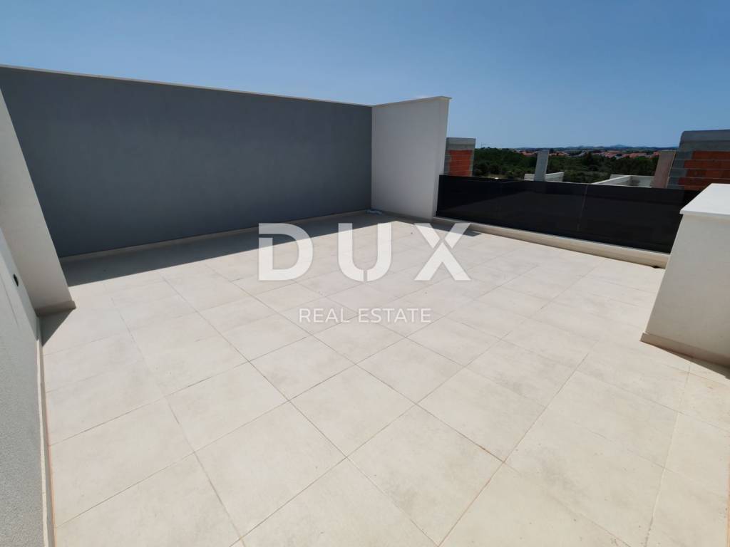 We present to you a unique opportunity to live in a breathtaking luxury semi-detached house! Located in the quiet town of Vrsi, this beautiful property covers 199 square meters of living space, perfectly arranged for maximum comfort. On the ground floor, a spacious living room welcomes you, ideal for family gatherings and relaxation, which opens onto a large terrace with access to a private pool. Imagine enjoying sunny days with a refreshing pool or relaxing in the evening with a view of the sea. On this level there is also a modern bathroom for added convenience. Upstairs there are three elegantly decorated bedrooms, each with enough space and natural light, and two luxurious bathrooms, providing maximum comfort and privacy for the whole family. One of the bedrooms has access to the balcony, ideal for morning coffee and socializing. As a special jewel of this house, the huge terrace at the top stands out, perfect for unforgettable moments with a panoramic view of the Adriatic Sea. Here you can enjoy unforgettable sunsets or dinners under the starry sky. This house represents the perfect blend of luxury, comfort and natural beauty, creating an ideal home for those looking for a peaceful life with a touch of exclusivity. Don't miss this unique opportunity - your new dream home is waiting for you!