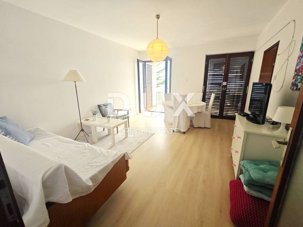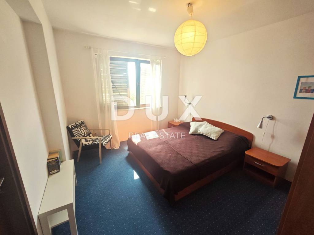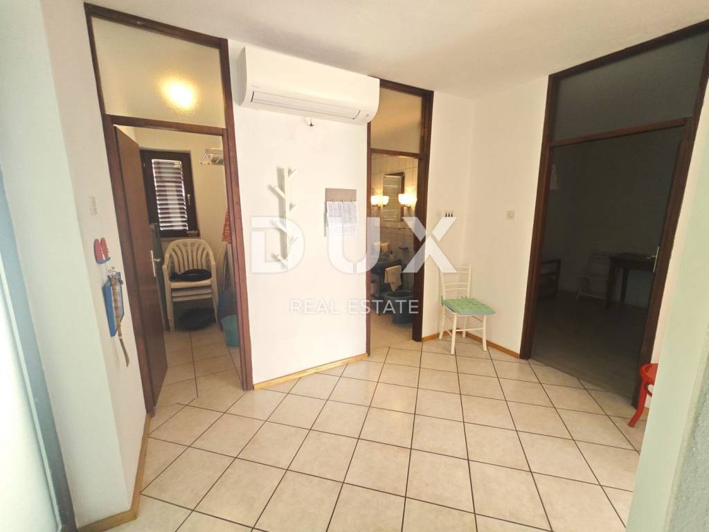 For sale is a 75m2 apartment on the first floor of the house with a garden with a beautiful view of the sea only 200m from the property. The apartment consists of a hallway, living room, kitchen and dining room, bathroom, pantry, two bedrooms, loggia and balcony facing south. The attic space and part of the garden also belong to him. Belonging garden at the back of the house of 72m2 (possibility of parking). The property is located in a quiet neighborhood and is suitable for vacation, as well as permanent residence or as an investment for tourism. Don't miss this opportunity!