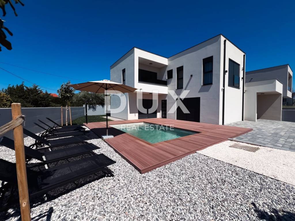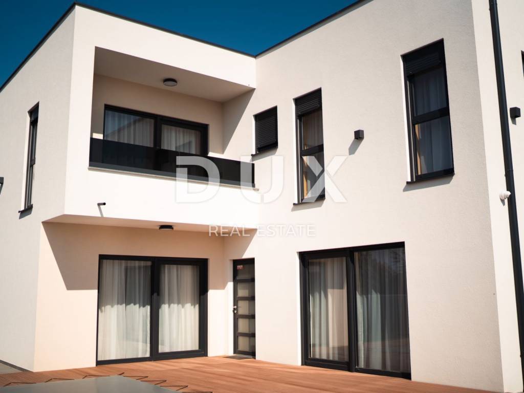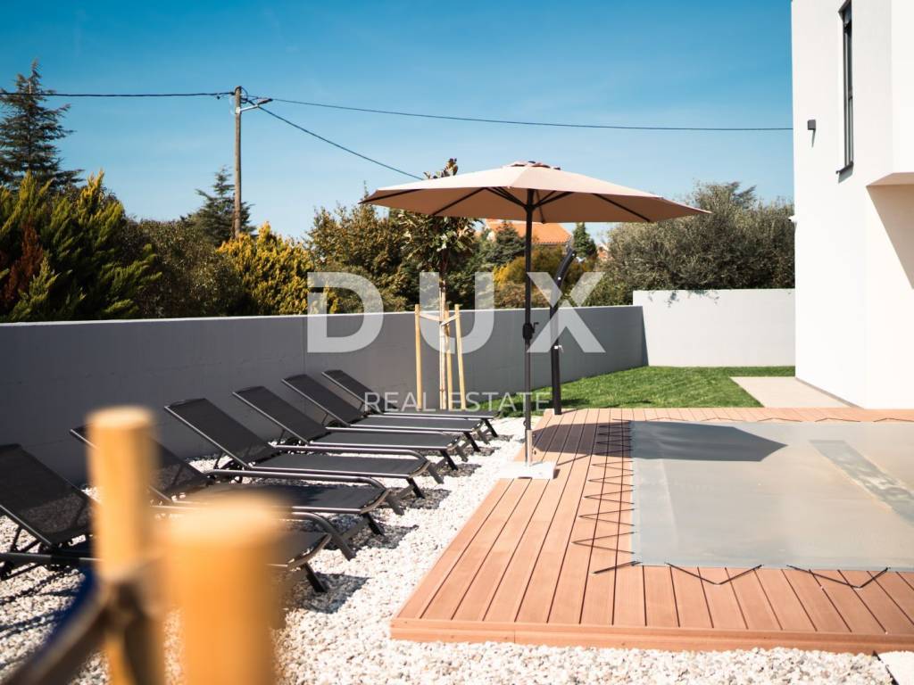 A modern semi-detached house with a pool of 223m2 is for sale right in Pomer. The house consists of two floors. On the ground floor there is a hallway, one bedroom with bathroom, toilet, living room with dining room and kitchen in one part, and a terrace that opens onto a 20m2 pool. Upstairs are two more bedrooms, each with its own bathroom and terrace. Excellent location, quality modern construction, straight lines. It is possible to park 3 cars in the yard of the property. The property is ideal either for a summer vacation or for year-round living. The property is located in a quiet bay near ACI Marina Pomer and 20 minutes' walk from the first beaches. Close to Medulin and the center of Pula, as well as the Pula airport, about 15 minutes' drive away.