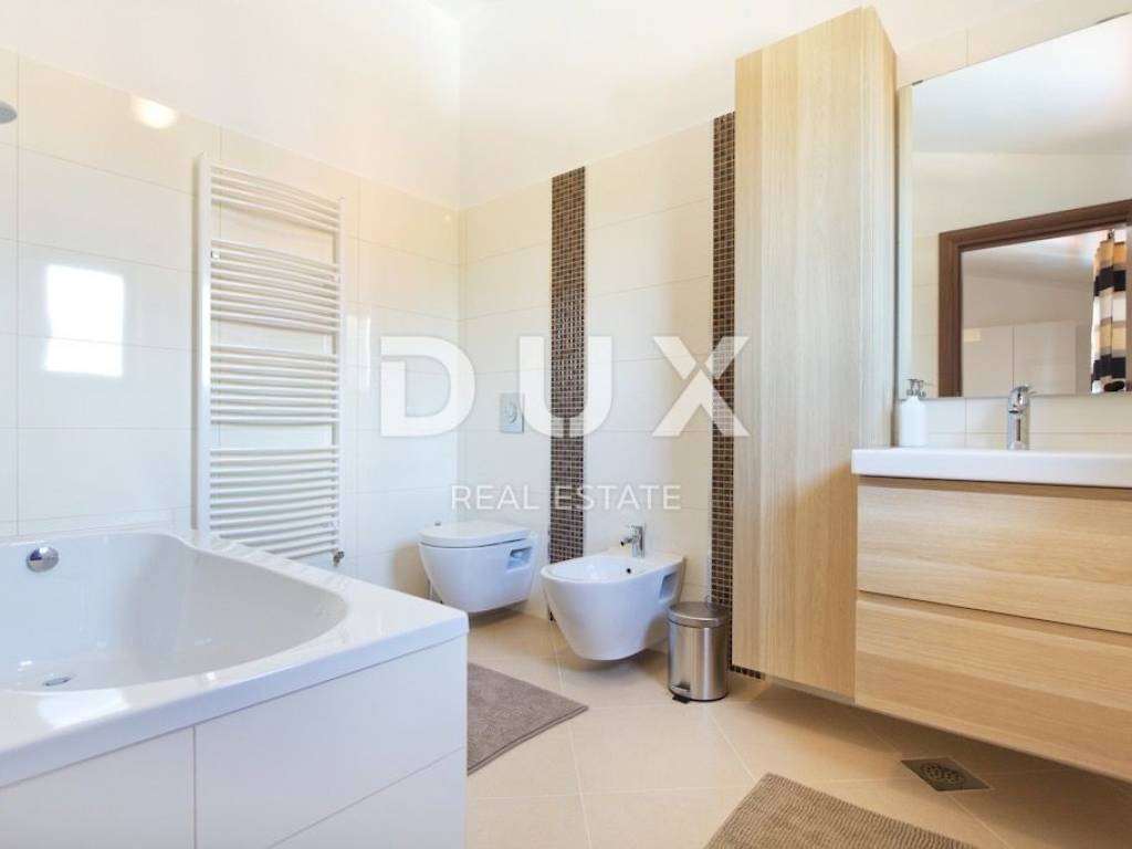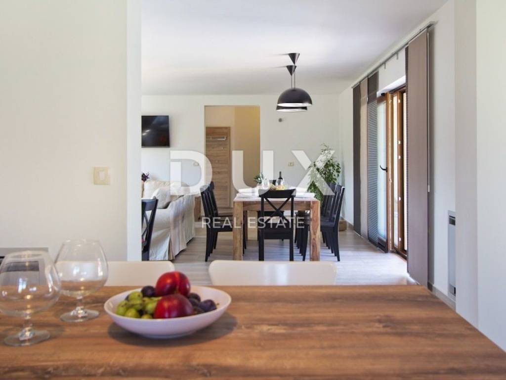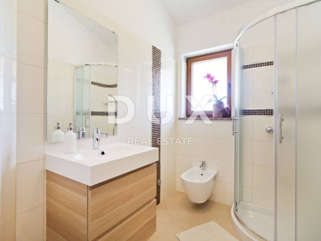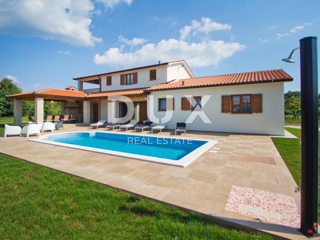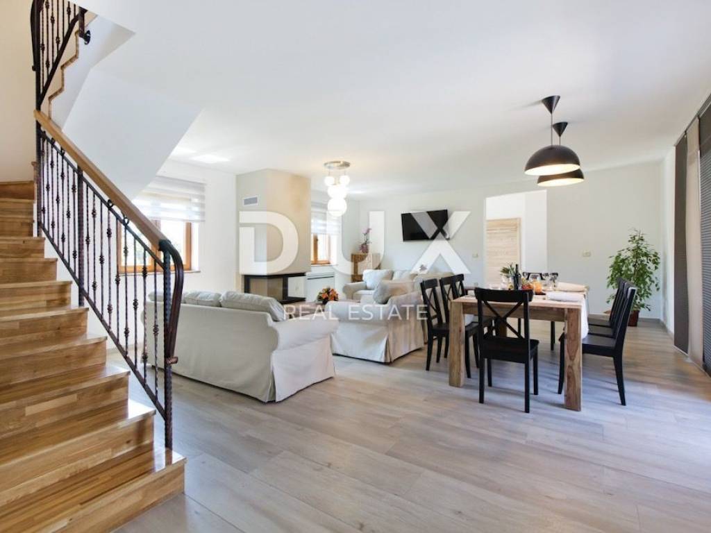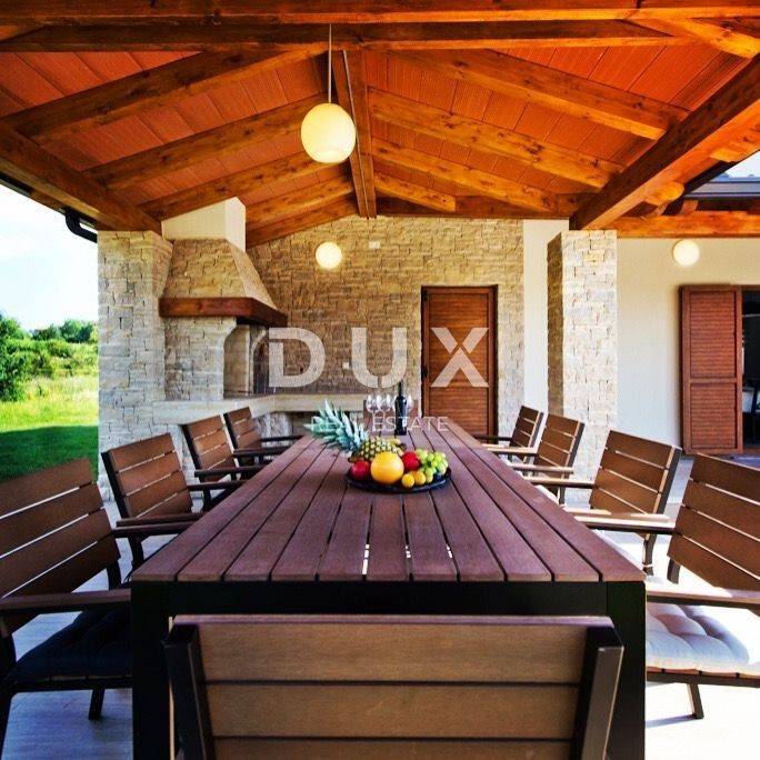 On a hill above the tourist town of Rabac is the medieval town of Labin, whose old name Albona was first mentioned in 285 AD. Today, it is a cultural and administrative center where the wealth of architecture and cultural and historical monuments is rarely combined so charmingly with numerous art studios and the breath of youth that gathers there, especially in the evening, in numerous cafes. In the eastern part of central Istria, on a high plateau above the Raša river valley and in the hinterland of the town of Labin, lies Sveta Nedelja. The special location, the proximity to the sea, but also to lush forests, means a holistic combination of green and blue. This area is full of architectural remains that will tell you the story of the long and interesting history of this area and awaken in you the desire to explore and discover why the rich from ancient times chose this very area as the place to build their country estates. This beautiful villa is located at a distance of about 9 km from the center of Labin, surrounded by vineyards and beautiful nature in a quiet and smaller settlement. It is located about 13 km from the famous tourist town of Rabac, with beautiful beaches, walks, nature, and a rich tourist offer. Istria, Labin - A beautiful villa with a pool in a green environment, 210 m2, consists of two floors. On the open ground floor, you can prepare homemade meals in a modern and fully equipped kitchen with a dining area or relax in a beautiful living room with a fireplace. On the ground floor there are also 2 bedrooms (ensuite) with their own bathrooms, as well as a separate toilet and storage room. A beautiful internal staircase leads to the upper floor, where there are two bedrooms each with a bathroom, a large covered balcony with a beautiful view of the green landscape, from which there are entrances to the home gym with a toilet. The living room opens onto a beautiful partially covered terrace. There is an outdoor grill in the covered part of the terrace. The BBQ area is bordered by a traditional dry wall with hand-hewn stone, and the terrace is connected to a landscaped beach with a 32 m2 swimming pool. The yard is bordered by a maintained green fence. Two covered parking spaces are planned. This beautiful villa is surrounded by vineyards and green meadows which offers an additional sense of peace and privacy. On the garden of 1160 m2 next to the pool and bbq area with garden furniture with enough space for a large family and friends, there is also a children's corner with a trampoline. A well-maintained yard with a lawn completes the impression of this excellent property. During the construction of this villa, special attention was paid to the details and the materials used. Heating and cooling is via a fan cooler and a heat pump, and there is a fireplace in the living room for a more special atmosphere during the winter months. This property offers you the opportunity to escape from the city lifestyle in a quiet and safe location surrounded by greenery and untouched nature. Apart from the fact that the villa is ideal as a family oasis, it is also interesting as a villa option for tourist rental.