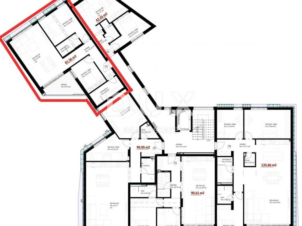 For sale is a beautiful three-room apartment in the very heart of the city of Umag, only 30 meters away from mobala. This modern apartment covers 82 square meters, providing an extremely comfortable and functional living space. The apartment is equipped with modern facilities and high-quality materials, which guarantees maximum comfort, luxury and comfort. It consists of a spacious living room with an open kitchen and dining room, two bedrooms, an entrance hall and two bathrooms equipped with a shower cabin. In addition, the apartment has a covered terrace of 9 square meters, perfect for relaxing. The apartment offers everything you need for a modern and luxurious lifestyle, including underfloor heating for year-round comfort, a high-security front door and an elevator. The location is extremely favorable, located in the very center of the city, with quick access to restaurants, shops, bars and all other facilities that Umag has to offer. In addition, this property provides exclusive access to a landscaped beach, ideal for an unforgettable summer vacation. High-quality construction, proximity to the beach, central location and geotraffic position near the Slovenian border make this property extremely attractive, suitable for permanent residence, vacation, and tourist rental. The property is under construction with planned completion in mid-2024. The apartment is sold "turnkey" without furniture. GENERAL PROPERTY CHARACTERISTICS: - Proximity to the sea: 30 m - City center - New construction - High-quality construction - Elevator - Underground garage - Air conditioning with split system (3 internal and 1 external) - Underfloor heating - Aluminum carpentry - Heat pump Do not miss the opportunity to become proud owner of this luxury apartment in Umag and enjoy an exclusive life experience in one of the most attractive new buildings on the market. For additional information and viewing of the apartment, contact our agency today. Dear clients, the agency commission is charged in accordance with the General Terms and Conditions. www.dux-nekretnine.hr/opci-uvjeti-poslovanja