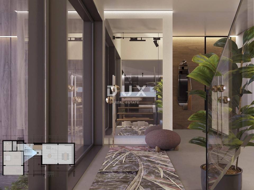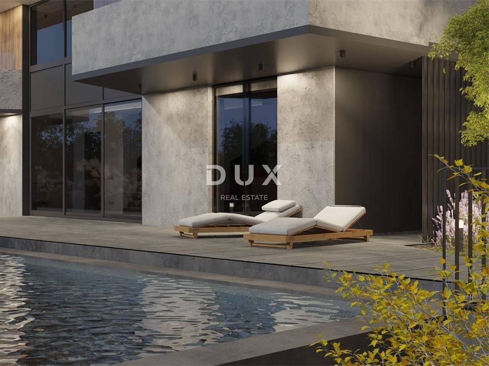 We present a special villa located on the Opatija Riviera above the very center of this beautiful city, only 470 meters as the crow flies from the sea, with a panoramic view of the sea, islands and mountains, with a beautiful large garden of 920 m2 and a swimming pool. It is a beautiful luxury villa on 3 floors, and consists of a spacious hallway, a wonderful and illuminated open space living room that communicates with the kitchen and dining room, from which a magnificent view of the sea can be seen through the glass walls. We emphasize that the master bedroom with en suite bathroom extends over one part of the first floor and opens onto the garden and pool. A large staircase leads to the 2nd floor with 3 luxurious bedrooms with en suite bathrooms, and each room is south-facing and has a beautiful view of the sea. In the basement there is a fitness room, as well as a large wardrobe. The special feature of this property is its quality construction and exceptional location near the center of Opatija, the Lungomare promenade, the Summer Stage and all the accompanying amenities. The villa will be built surrounded by lush greenery in a quiet cul-de-sac and will thus ensure privacy and comfort along with a wonderful experience of the Kvarner Bay. The villa is located just a 1-minute drive from the center of Opatija and Slatina beach, thus ensuring a perfect stay and life in the beauty of the Adriatic - Opatija. Dear clients, the agency commission is charged in accordance with the General Terms and Conditions. https://www.dux-nekretnine.hr/opci-uvjeti-poslovanja