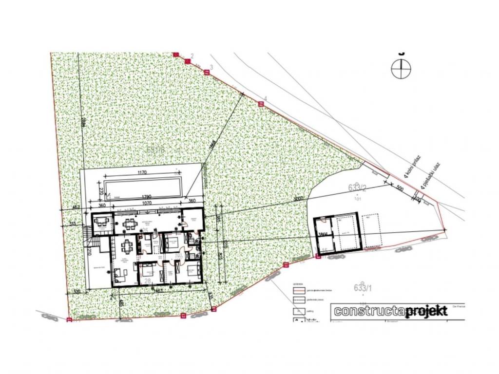 Radi se o vrlo zanimljivoj prilici za sve one koji traže idealan kutak za miran i siguran obiteljski dom ili za sve one koji traže idealnu priliku za investiciju. Radi se o građevinskom zemljištu ukupne kvadrature 2284m2 pravilnog oblika i ravne podloge. Na kojemu se planira projekt izgradnje moderne vile od ukupnih površine, odnosno 195m2 NETO stambene površine.