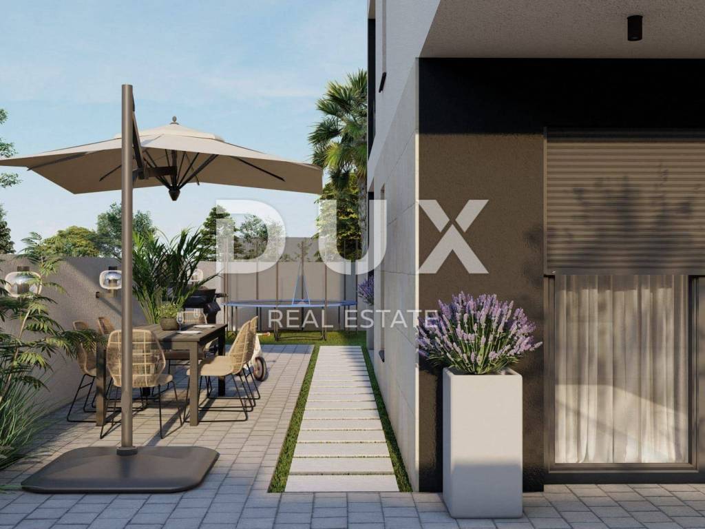 Pula lies on the southwestern part of the Istrian peninsula in a well-protected bay and is the largest city in Istria. It is known, like the rest of the region, for its mild climate, calm sea and untouched nature. The town has a long tradition of winemaking, fishing, shipbuilding and tourism, and is also a transit port. Pula has been the administrative center of Istria since Roman times. Today, around 67,000 people live in the inner city area, but the area that gravitates towards it every day, and due to a combination of circumstances, is not administratively included in the structure of the city, although, in fact, it is an integral part of it, has more than 100,000 inhabitants. This smaller residential building with a total of 6 residential units is located on the outskirts of the city of Pula. The property in question is located on the ground floor and has a total living area of 54.88m2. It consists of a small entrance hall, a living room connected to the kitchen and dining room, two bedrooms and a bathroom and a terrace with access to a private yard of 97 m2. Each property is equipped with PVC joinery, electric underfloor heating in the bathroom, while the rest of the apartment is heated and cooled by inverter air conditioners. The floor coverings are high-quality laminate and tiles, which future owners have the option of choosing within the investor's budget. Each residential unit has its own parking space. The apartment is sold fully furnished as shown in the photos! The planned start of construction is September 15, 2024. while the completion of the works is scheduled one year later, i.e. September 15, 2025. years. Dear clients, the agency commission is charged in accordance with the General Business Conditions: www.dux-nekretnine.hr/opci-uvjeti-poslovanja