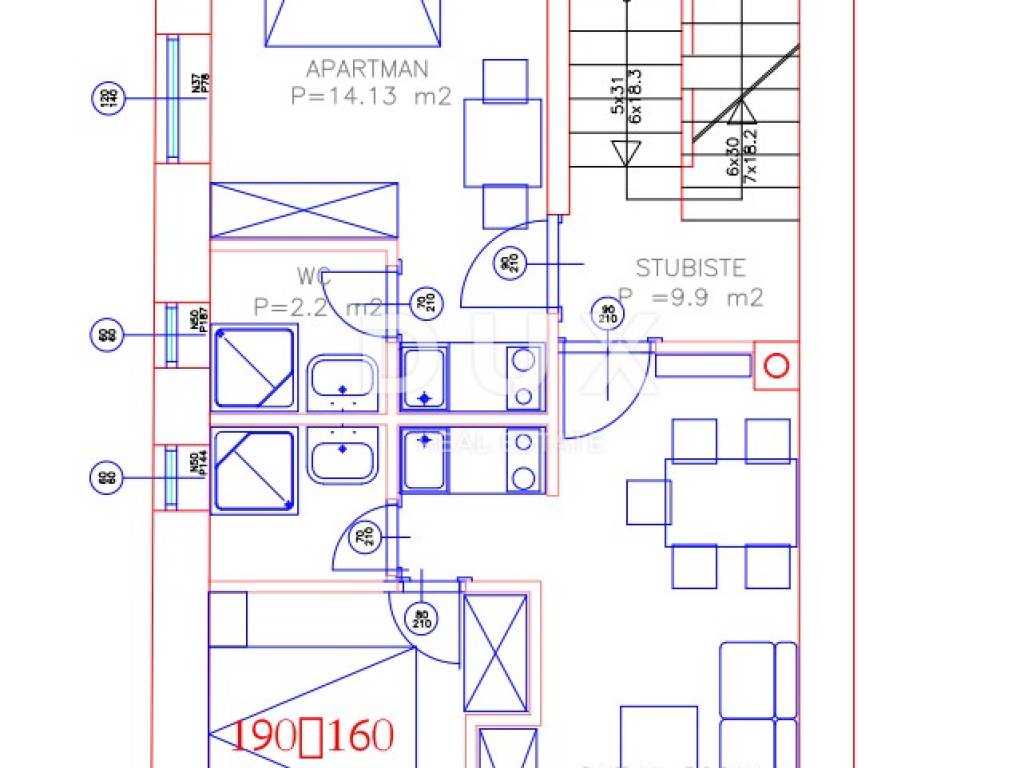 House for sale in Zubovići on the island of Pag. The house consists of 4 apartments on three floors. The house has a beautiful terrace with a view of the Bay of Pag and is only 200 meters from the beach. In the northeast of the island of Pag are the settlements of Vidalići, Kustići, Zubovići and Metajna, which are collectively called Barbati. A picturesque road through a landscape dotted with dry walls leads to Zubovići, which is the center of Barbat, and is located between Kustić and Metajna. The place is located on a small hill, and the panorama is dominated by the Parish Church of the Immaculate Conception, built in 1854. The lack of vegetation and the abundance of stone here, as well as on a large part of the island, give a stamp to the landscape, and there is a particularly beautiful view of the Bay of Pag. The beautiful pebbly beach Veli Žal stretches out in the village itself, and the other well-known and somewhat hidden "Robinson" beach in the village of Dražica can be reached by a winding and narrow path - it is about 200 meters away. This property is an ideal investment for a tourist rental but also for a family vacation. Dear clients, the agency commission is charged in accordance with the General Business Conditions: www.dux-nekretnine.hr/opci-uvjeti-poslovanja