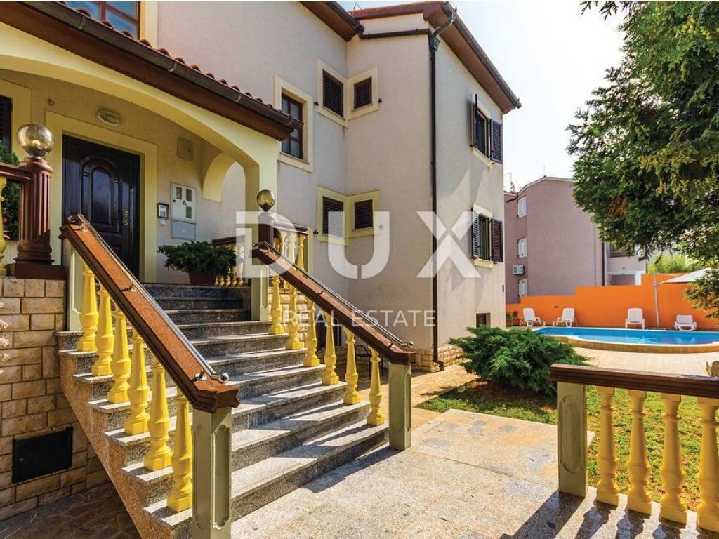 ISTRIA, BANJOLE - Apartment house 150m from the sea! Volme is a small tourist town located near popular destinations such as Banjol, Medulin, Pula and Premantura. This idyllic location offers the perfect opportunity for a quiet, relaxing vacation, but also for an active vacation in nature. Directly around the property are unpaved paths that lead through beautiful nature and lead you to the magical "Kamenjak" nature park. Also, beautiful natural beaches such as Volma, Banjola, Scuza and many others are in the immediate vicinity (a few minutes' walk). This beautiful apartment house is located just 150m from the sea. It is located on a large plot of 1000m2, while the living space is 500m2. It extends through the ground floor, first and second floor and consists of a total of 5 residential units and business space on the ground floor. The apartments are in the system for renting for tourist purposes and are thus equipped and bring a safe return on investment for the new owners. The apartment offers a beautiful view of the sea. There is a 45m2 swimming pool in the spacious garden, landscaped green area with canopy and barbecue. Parking is provided for several vehicles in the outdoor parking lot and in the garage. Oil-fired central heating and inverter air conditioners are installed throughout the entire building. An ideal opportunity to return the investment through renting for tourist purposes and considering the excellent results so far, the new owners just have to continue with the same. Dear clients, the agency commission is charged in accordance with the General Business Conditions: www.dux-nekretnine.hr/opci-uvjeti-poslovanja