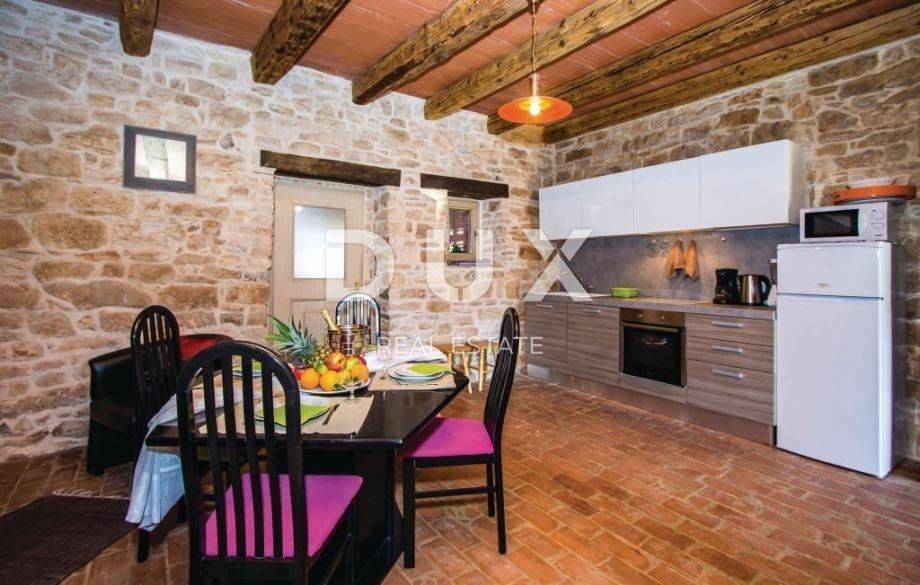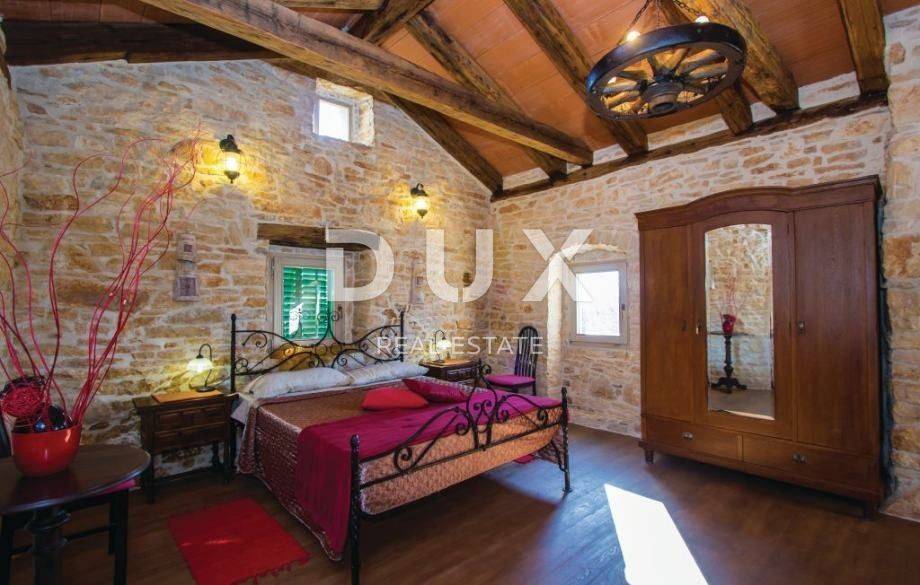 The lovely Renaissance town of Svetvinčenat is located on a rugged plateau surrounded by forests, pastures and vineyards. Svetvinčenat is located at 310 meters above sea level in the south of central Istria and is dominated by one of the most beautiful Renaissance squares in the country and the oldest and best preserved medieval castle in Istria. There are 22 settlements in the municipality of Svetvinčenat, which is adorned with natural beauty, rich historical and cultural heritage, artistic manifestations and food and gastronomy tourism. This unique architectural treasure is located in one of the settlements of the municipality of Svetvinčenat - a beautiful Istrian stone house that exudes charm and tradition. This impressive property is located in a quiet location and offers privacy and relaxation in untouched nature. The house of 150m2 consists of a ground floor and two floors. On the ground floor there is a living room with a kitchen and dining room, a bathroom and an additional room that can be used as a bedroom, but also as a study, playroom or space for hobbies. On the first floor, there is another living room with access to the balcony and one bedroom with a bathroom. On the second floor, there is another bedroom with its own spacious terrace and bathroom. The house is air-conditioned for a pleasant stay throughout the year, and the rustic wood stove creates a warm and cozy atmosphere during the winter months. This beautiful stone house is located in the picturesque Istrian landscape. The large garden around the house provides space for outdoor enjoyment, whether you want to organize a family picnic or just enjoy the charms of nature. This romantic Istrian stone house has another advantage - a spacious luxurious swimming pool that will win you over at first sight. The pool is perfectly integrated into the beautiful garden, creating an oasis of peace and relaxation that will refresh you during hot summer days. It will make you feel like you are at your own private resort. Enjoy the silence, relax with the sound of water and chirping birds and surrender to the charms of nature. The pool is an ideal place to escape from everyday stress and the fast pace of life. The property is located in a traditional Istrian village with friendly locals, yet close enough to urban centers for quick access to all amenities. This stone house has incredible potential for your new home or as a tourist investment.